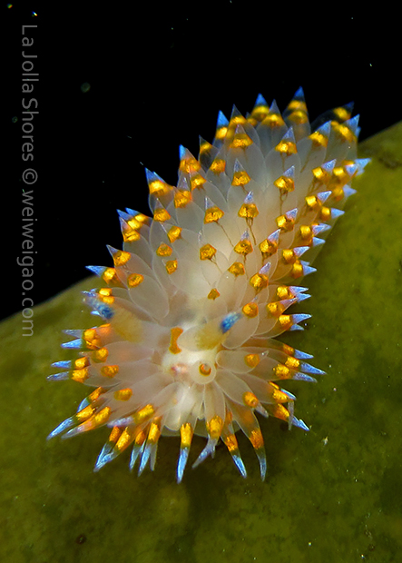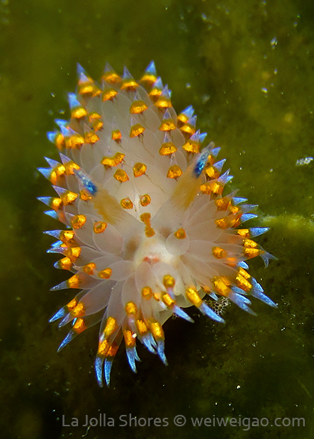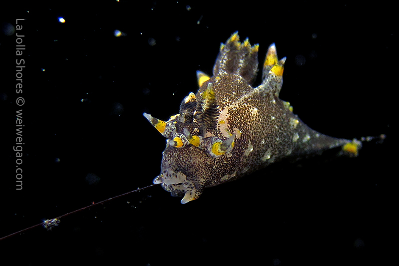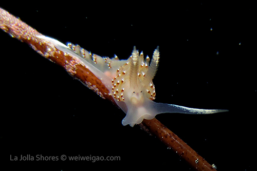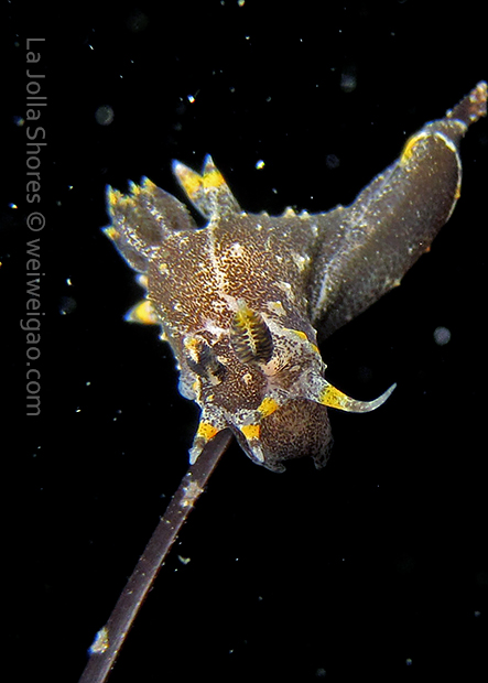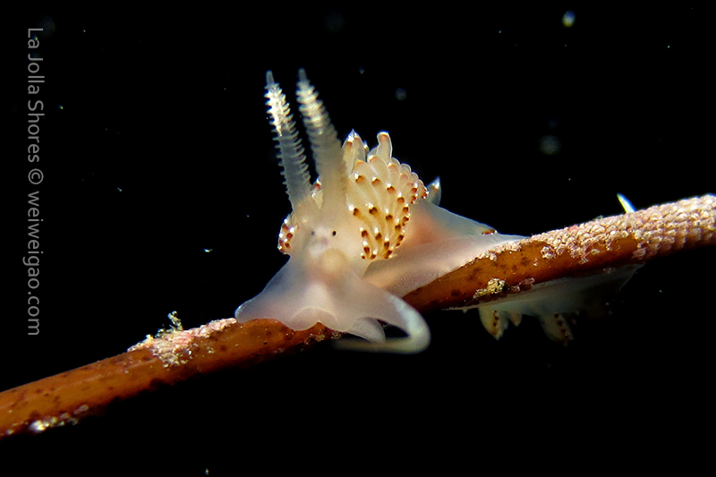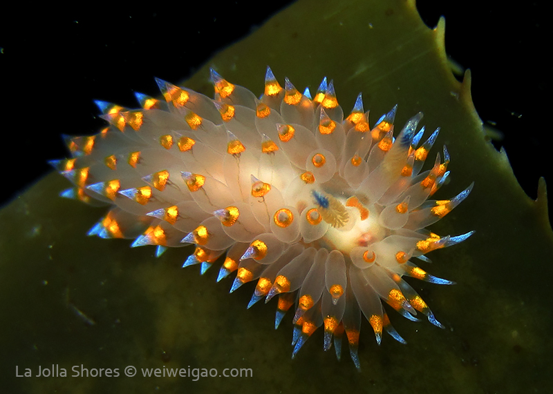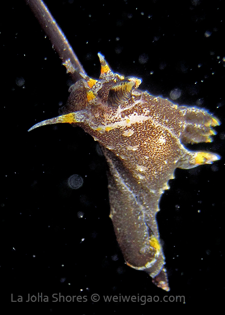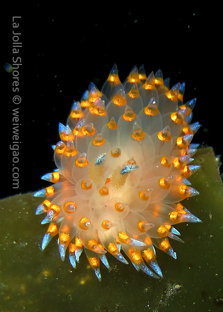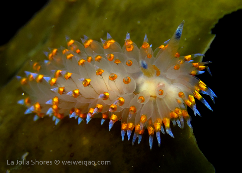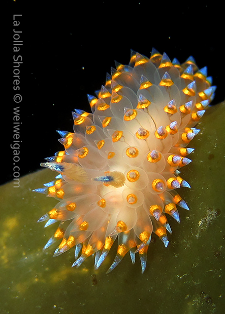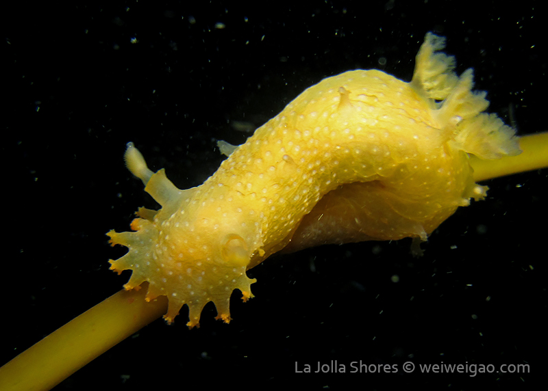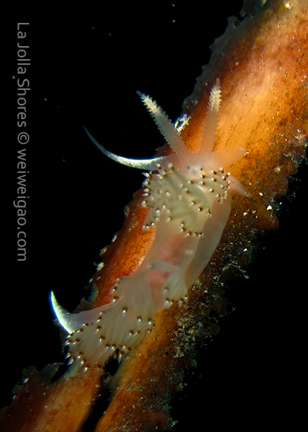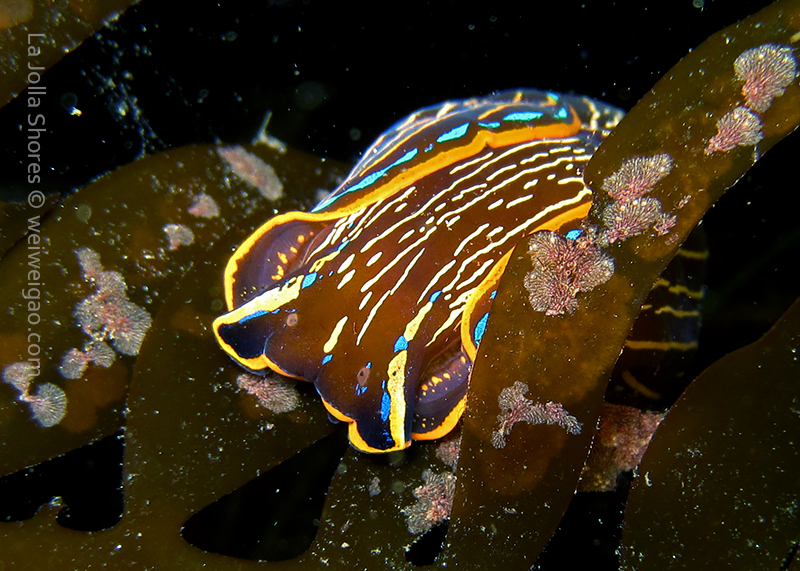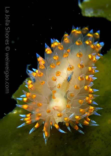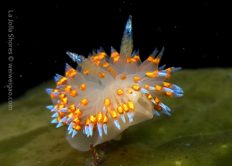 When I got to the kelp patch near the V point, a little orange spotted triopha on the kelp caught my eye. It was really cute.