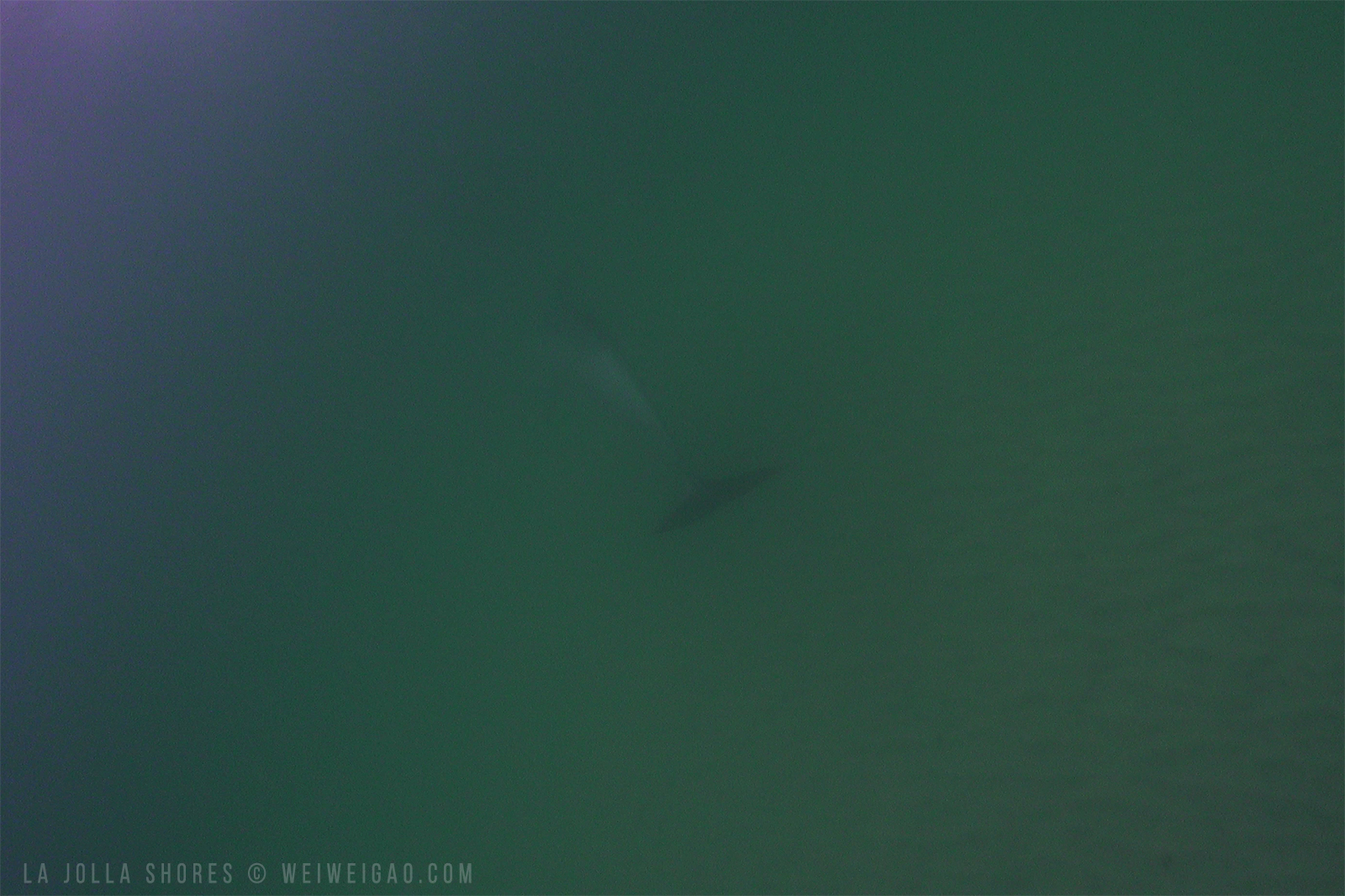 I joined Mike this morning and dove La Jolla Shores. We stayed in the shallow for the whole dive. The visibility in the shallow was fantastic 20-30 ft and warm 62 F. The highlight was at the end of the dive. When a dolphin in the far caught Mike’s attention, I thought it was a common one, which was just passing by. But soon a pod showed up, chasing a bait ball. In a little while, two followed by three jumped out of the water up in the air. Then they moved to the shore, closer to the beach than the surfers were. As Mike and I were watching, the dorsal fins popped out of the water right behind Mike and swam fast toward me. I just heard the yelling from Mike “get down!”. I went back to the water and one big dolphin swim by super fast within arm’s reach. We were super excited. In just a minute, they turned back and swam by us again. This time they were under us on the bottom. My camera was out of battery but was able to capture a few frames (not even a second) as one swam by. It was a thrilling encounter