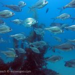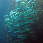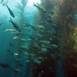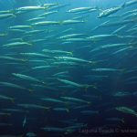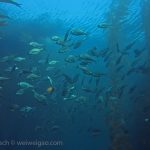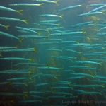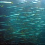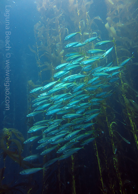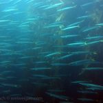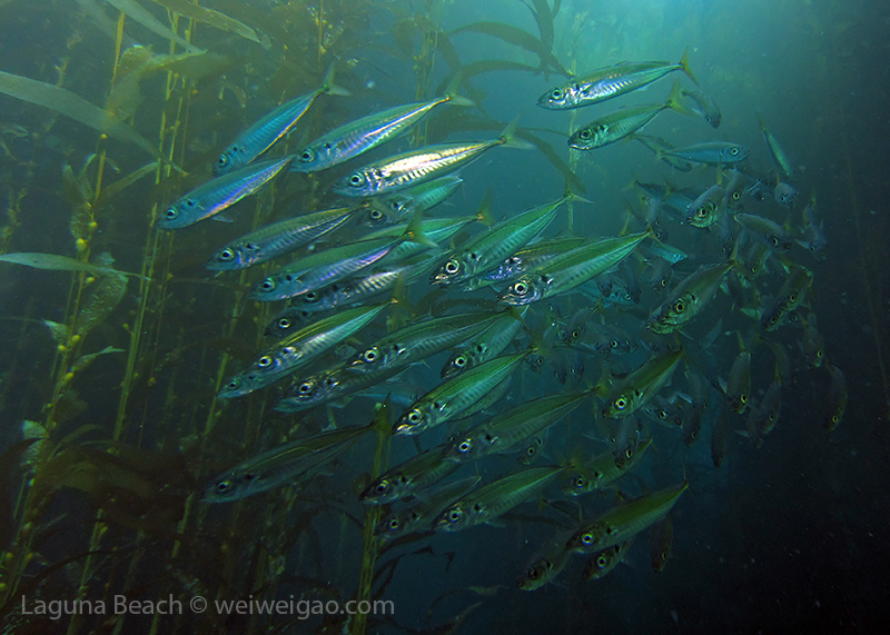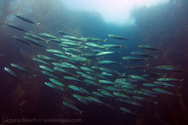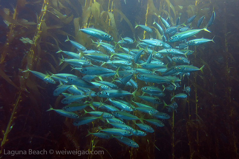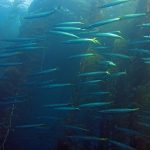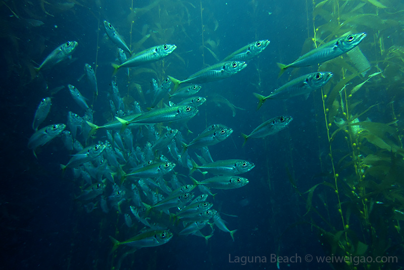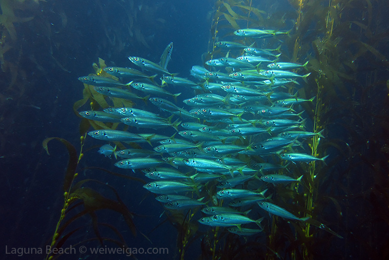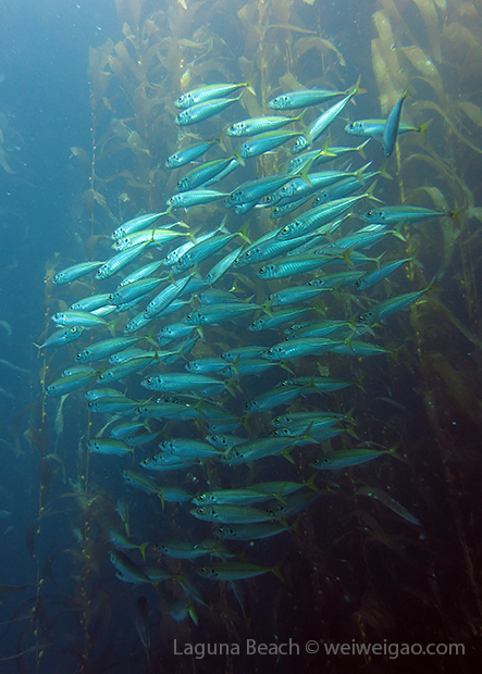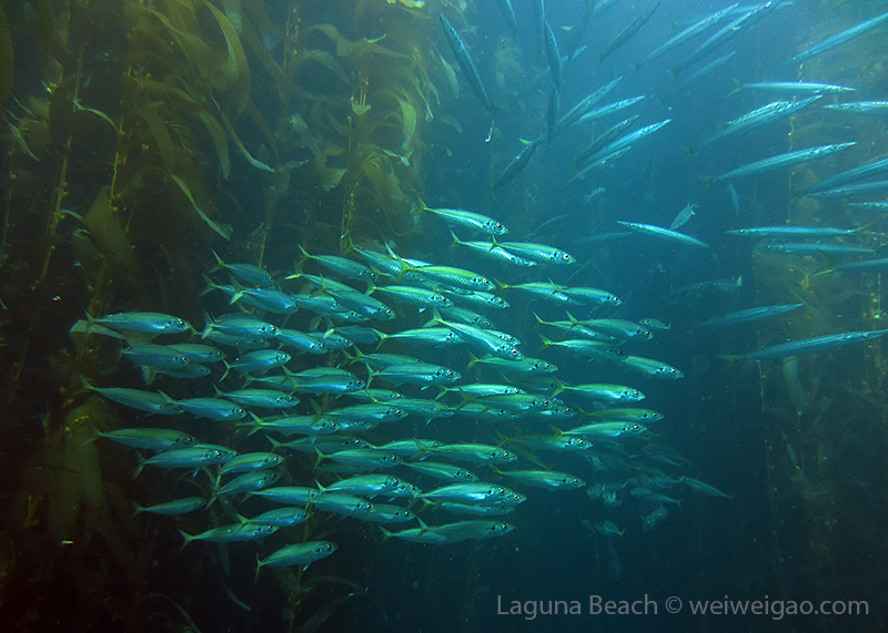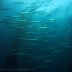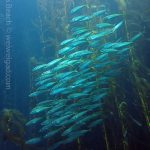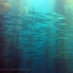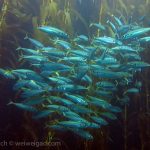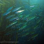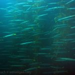 Next to the barracuda, a smaller baitball is hanging around. They blend very well with the kelp and gives beautiful pictures.