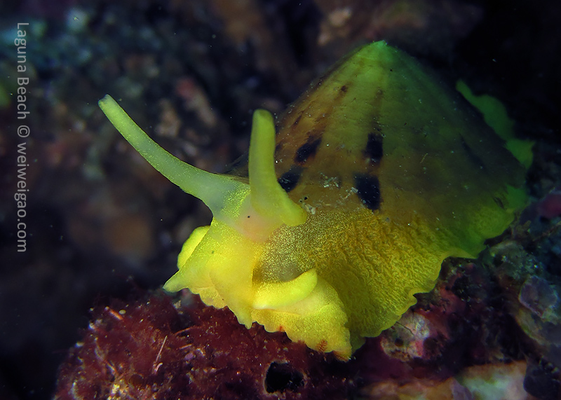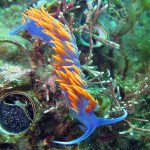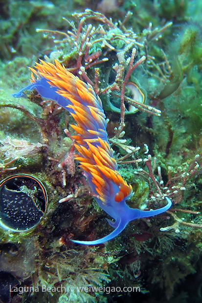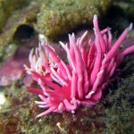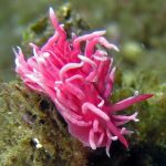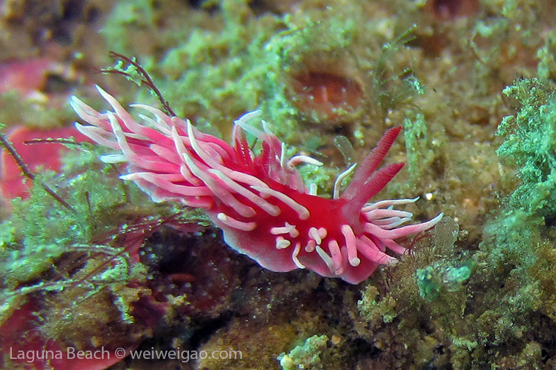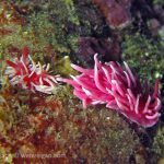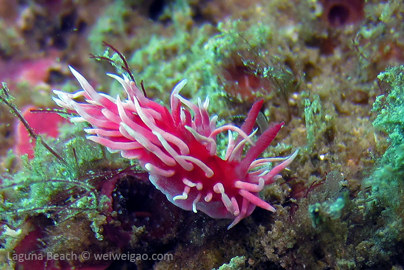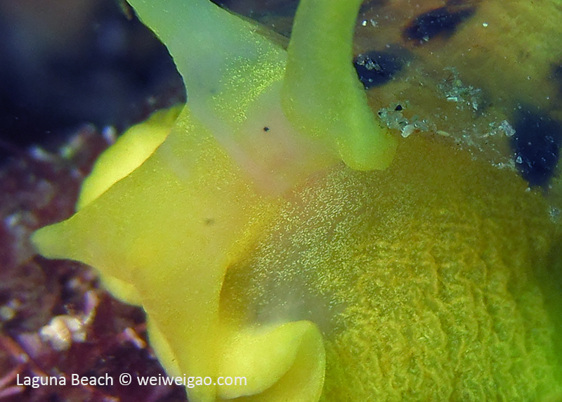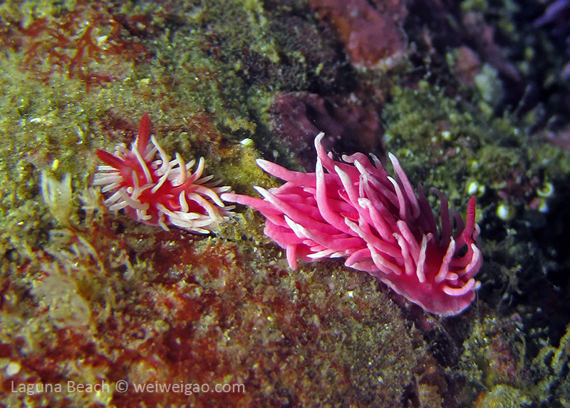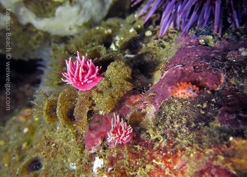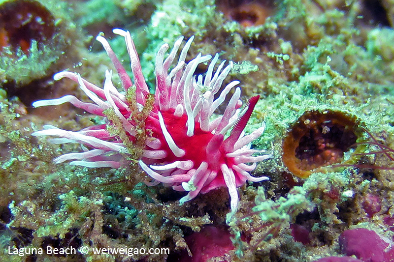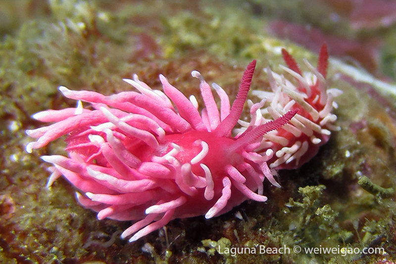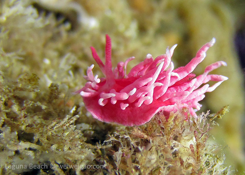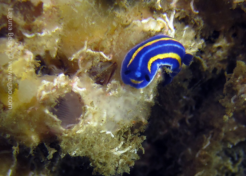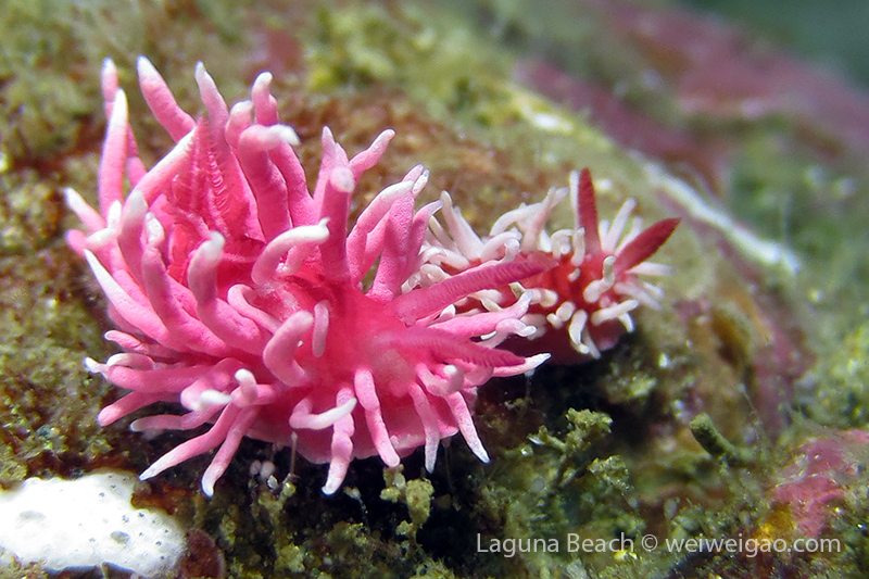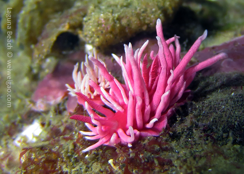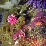 A fun sighting on the south is a pair of Hopkin’s rose. They are somehow pale in color but I never had a pair in my picture. One is larger and one is obviously smaller. I spend quite a lot of time with them. There are a few Spanish shawls around as well. Into the crevices, I also find a few tiny Porter’s Chromodorid.