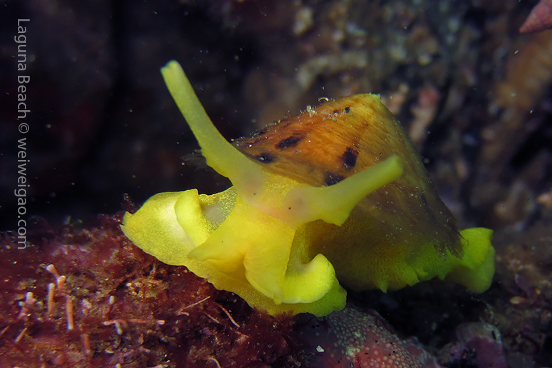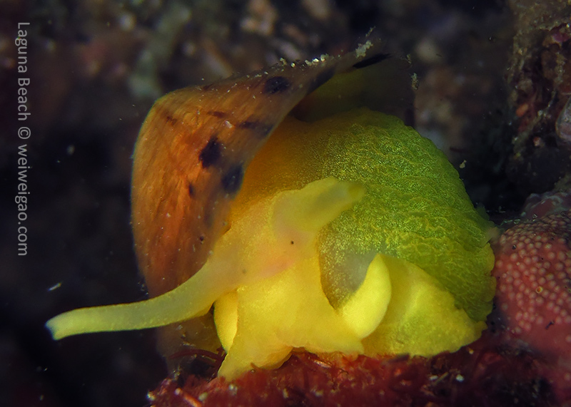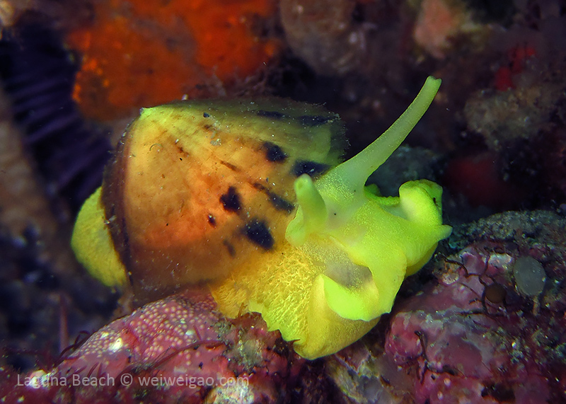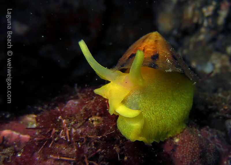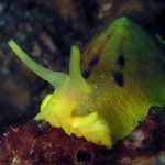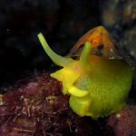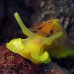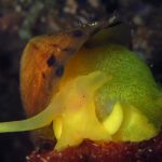 On some rocks I find a few Tylodina fungina. They are in good size and feeding on the yellow sponges.