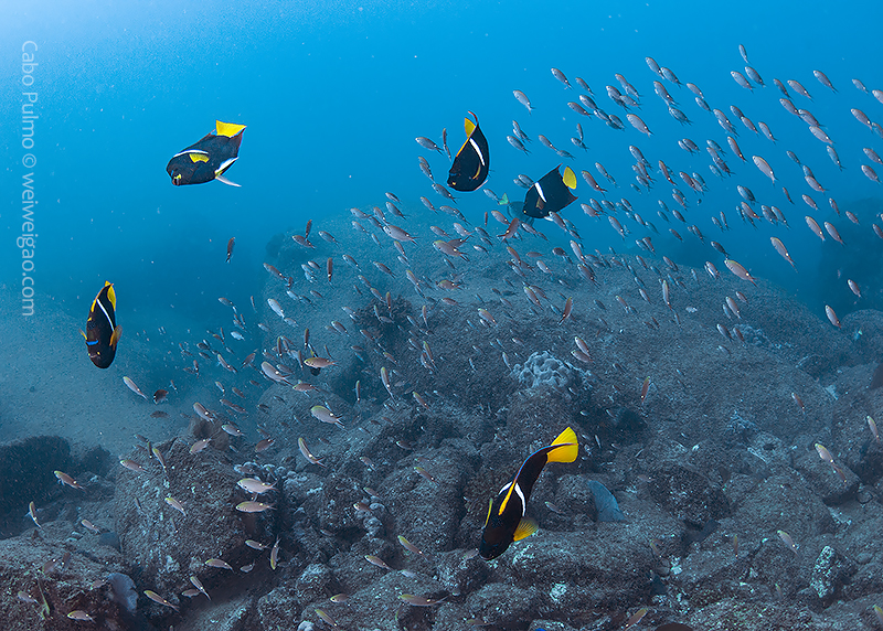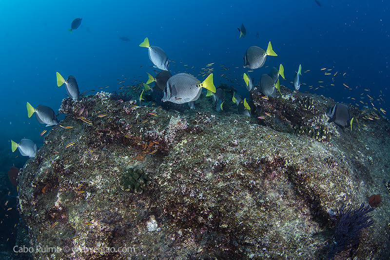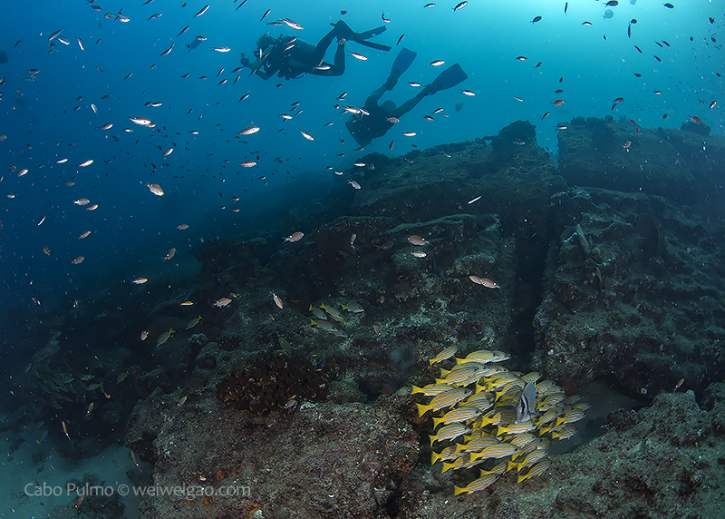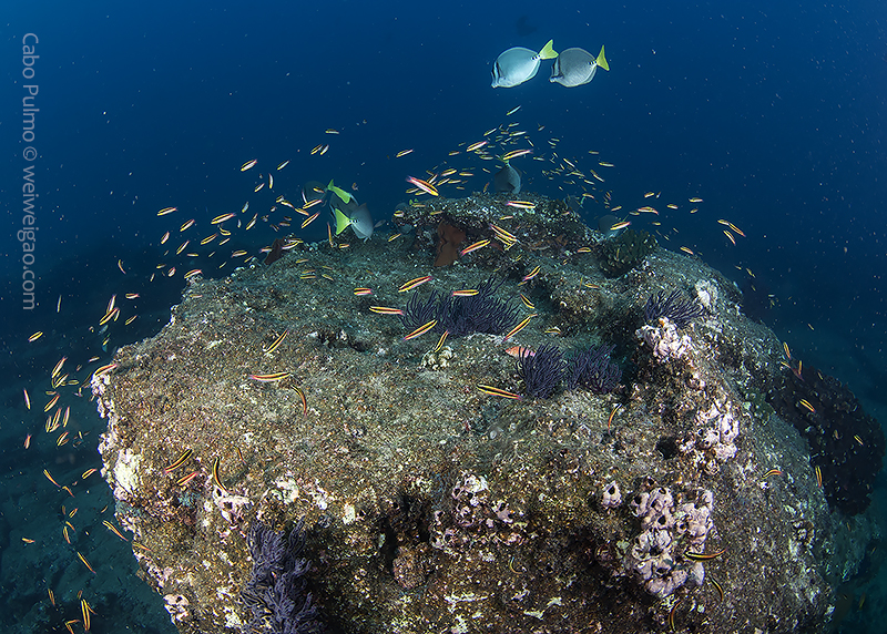 October is the high season of diving Cabo Pulmo and we were scheduled for the afternoon dives. But the diver center decided to rent a boat to accommodate divers who otherwise would not be able to dive in the morning. We were lucky to join a trip in the morning and the first dive we headed to El Islote, a pinnacle on the south side of the park.