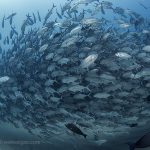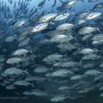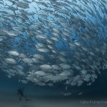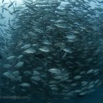 For the second dive, we headed north for the jack tornado again. This time, I dropped down right next to the fish. I kicked slowly, watching tentatively and letting the fish take the course.