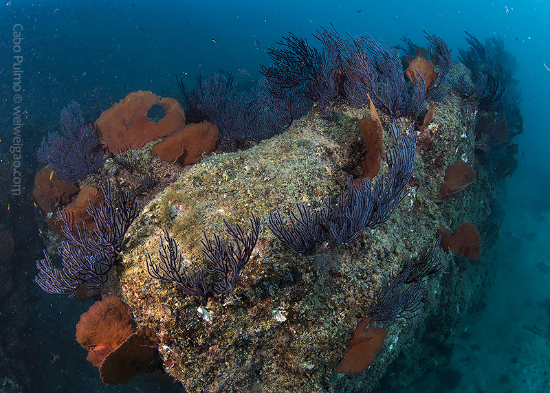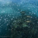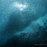 In the afternoon, we headed to El Islote again for our first dive. I was a bit disappointed because the overall lack of life at the site. But then I learned from Claudio that the millions of small fish were actually sardines. They came for a certain period of time, staying close to the pinnacle. Now I knew the fish was still there and I was excited. After we dropped down, a thought came to my mind – I just wanted to stay where the fish was. I told this to Claudio and he agreed. I was able to stay with the fish for the whole dive.