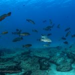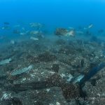 When we woke up this morning, the wind picked up. The sea became choppy today. We headed out to La Esperanza for our first morning dive. The dive site featured big canyons and narrow channels. Starting from the beginning of the dive, we experienced strong current and surge. The sediment was stirred up and the visibility dropped a lot. But then we came across a feed ground of leopard groupers, where the surge suddenly disappeared and the visibility opened up. It’s a small area packed with lots of groupers.