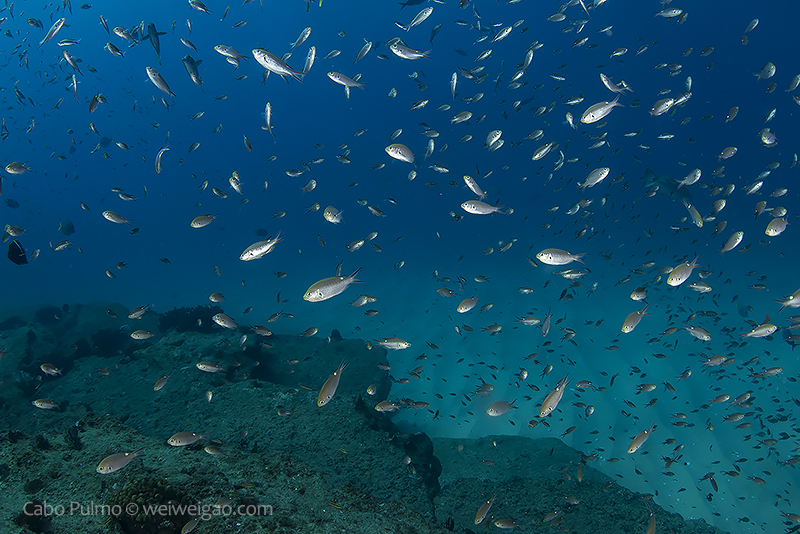 For the second dive, we headed to El Bajo, hoping for a relaxing dive. But the condition was a bit out of our expectation. We had strong current and low visibility. But we still came a cross a few epic fish schools.