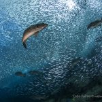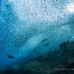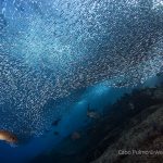 Today was the last day of our diving at Cabo Pulmo. In the morning when we woke up, Ed said he would like to see the jack and sardines again. I was hoping to go to the sardines, even I had to hire a boat to do that. But the idea came: why not we persuade the boat to go to these places? These are truly the two most mesmerizing sites.