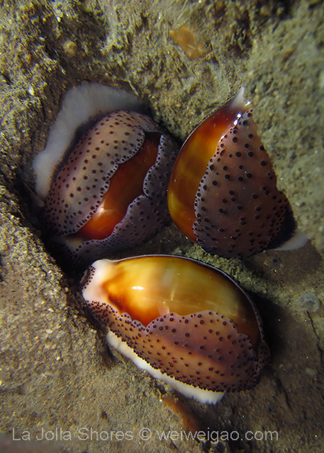 The Tunicates continue their invasion, and the VP Seahorse is still there. I found a nice big (Red?) Rock Crab nestled at VP, and many Cowries. I ended up making my way all the way to the Engine Block, which I almost missed due to not being able to see. On the way, a large Horn Shark made its presence known, and there is a plateau area just full of baby Piddocks, I wonder what they like about that spot.