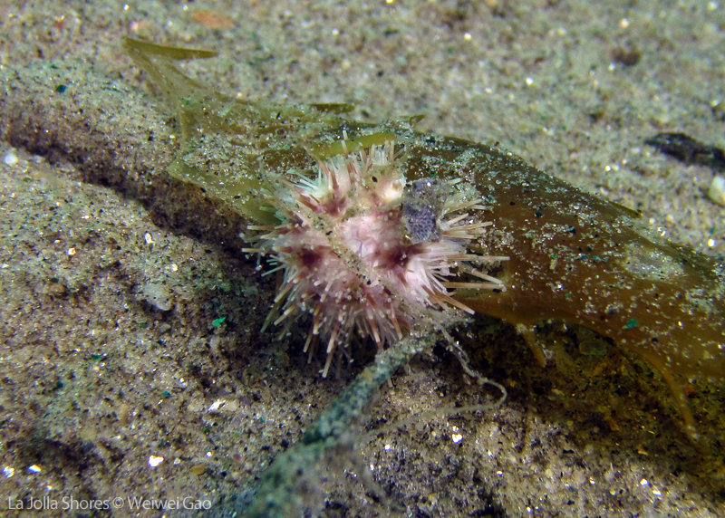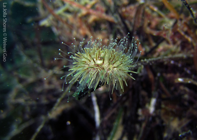 • A baby white sea urchin – they have lots of tentacles and are attached to grass.
