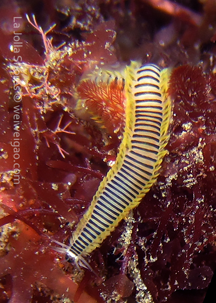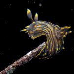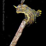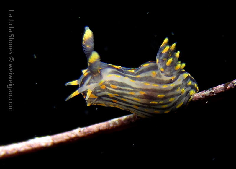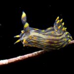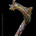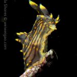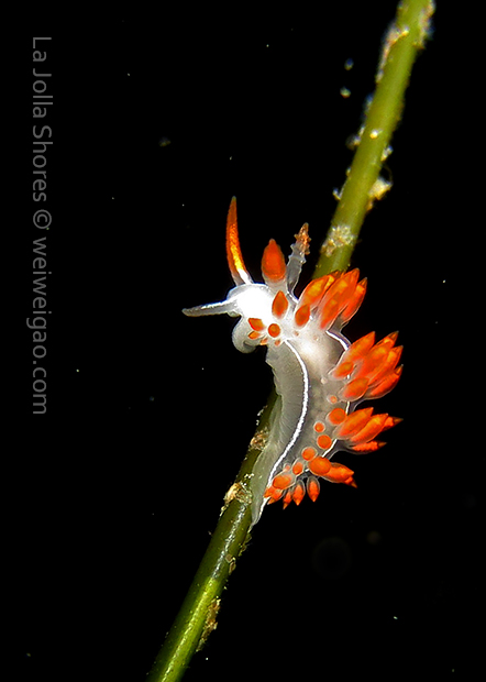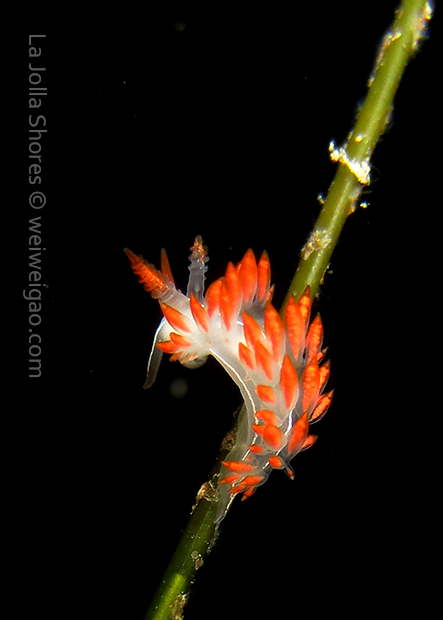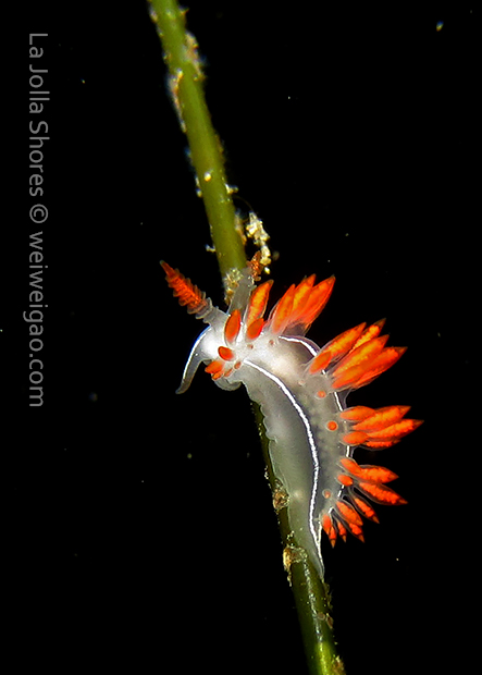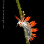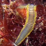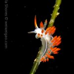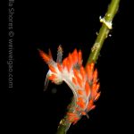 From there I started swimming south. Only after a few kicks, I could see a three lined aeolid in bright red.