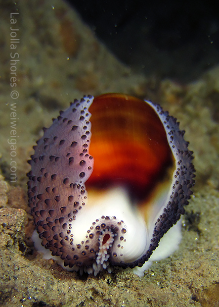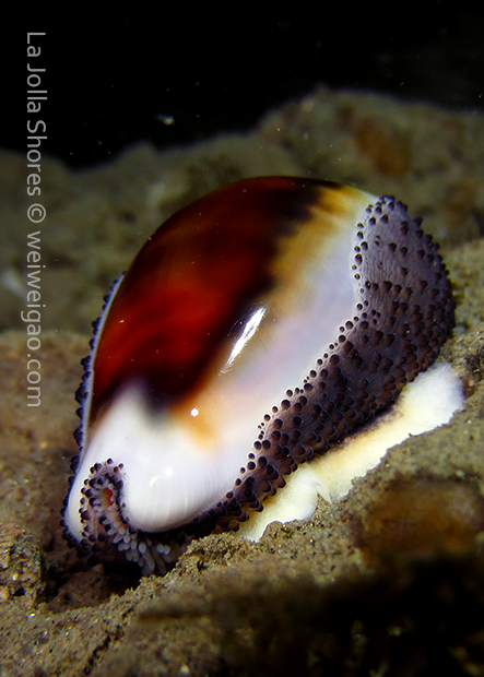 I wasn’t far from the canyon wall. The visibility was good and the water was calm. A few chestnut cowries were hanging out on the ledges. They looked really pretty.