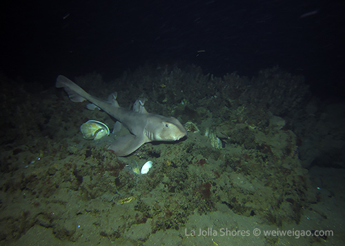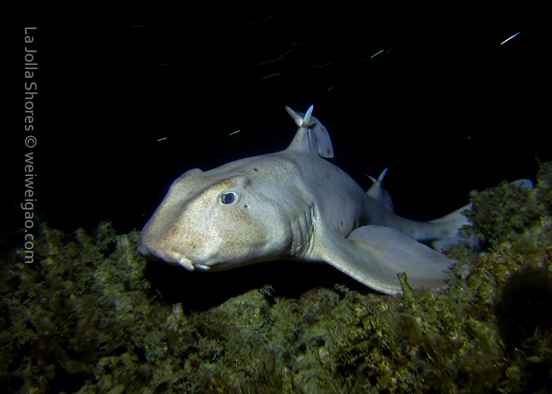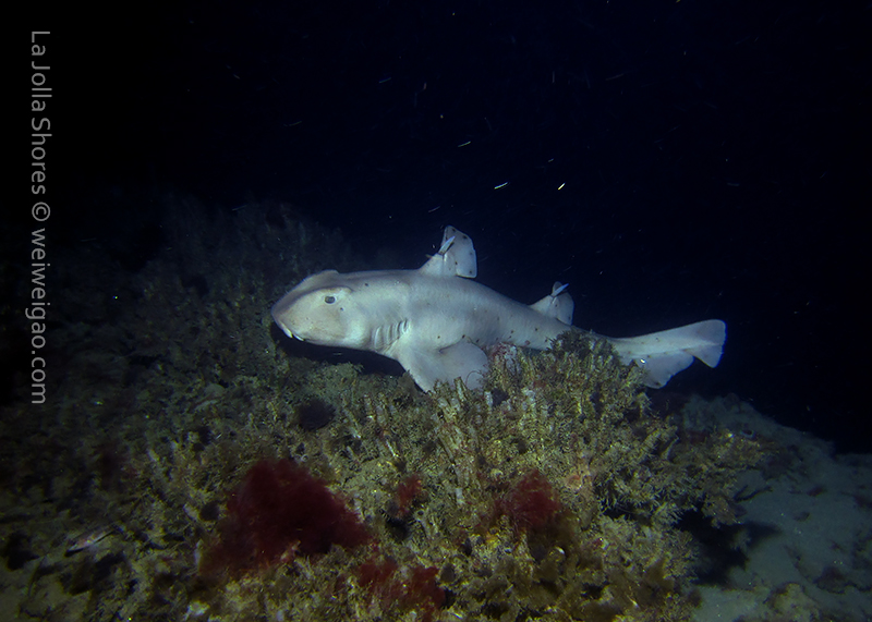 Soon I got to the V point. There was an adult horn shark lying right on the tip of the point.