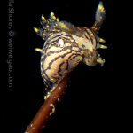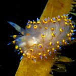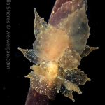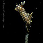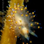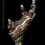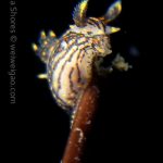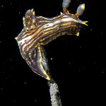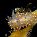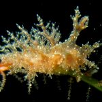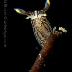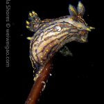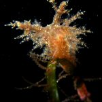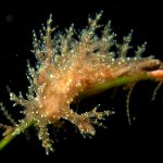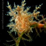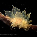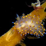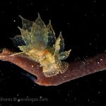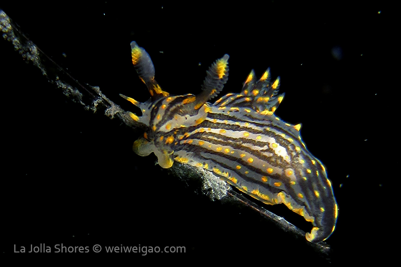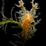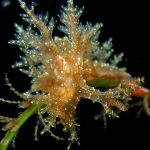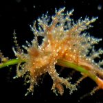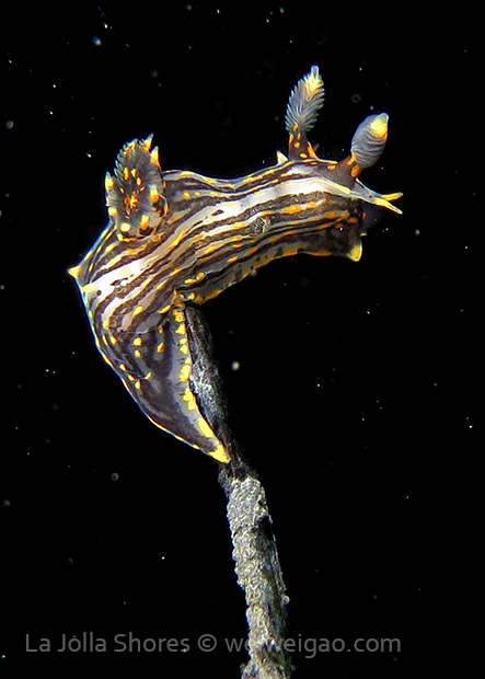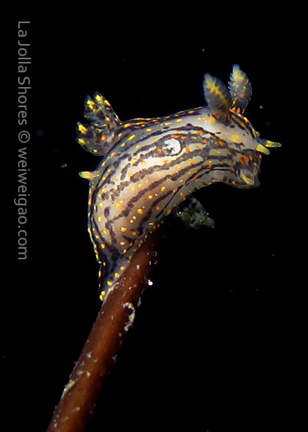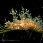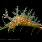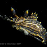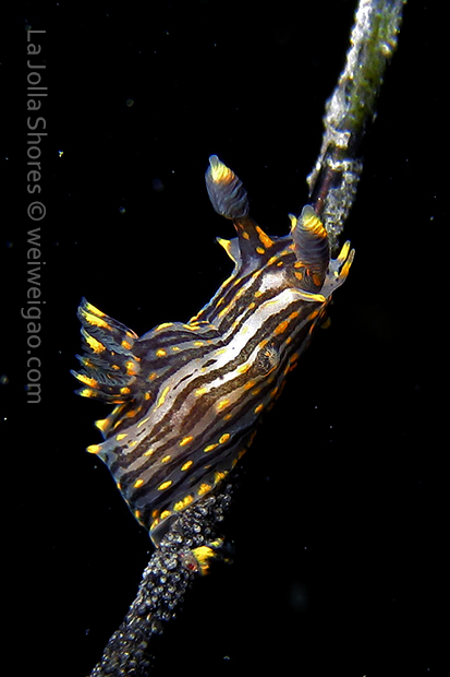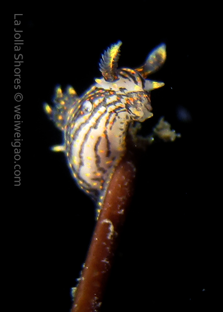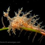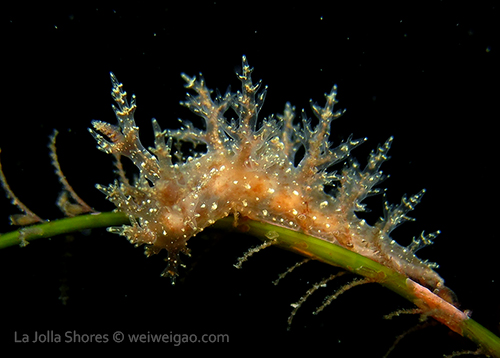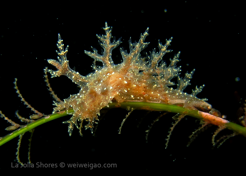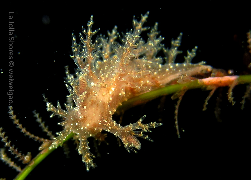 The big swells finally passed. Headed out to the shores for a night dive. The surf was small but the water a bit hazy and surgy. The crap patch is a nudibranch zoo. With a closer look at the grass, I can see all kinds of nudibranch with various sizes. The first encounter was a Dendronotus frondosus at the sandy slope before the patch.