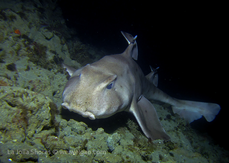 A large horn shark was sitting on the canyon wall.