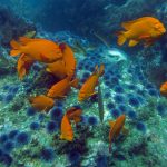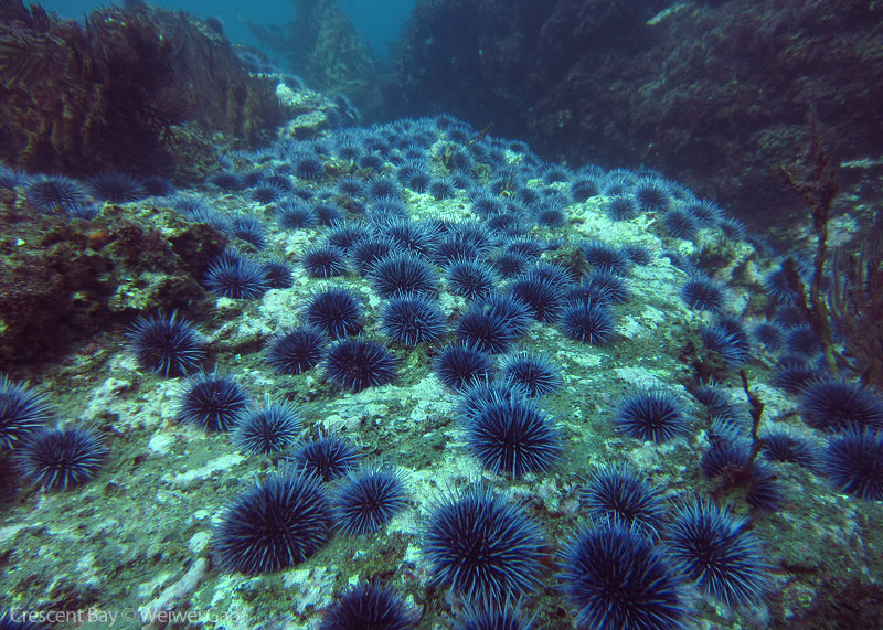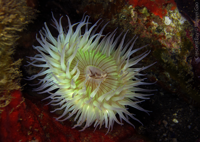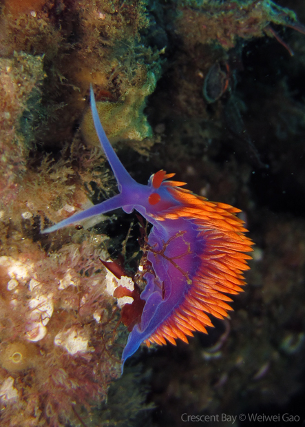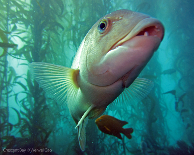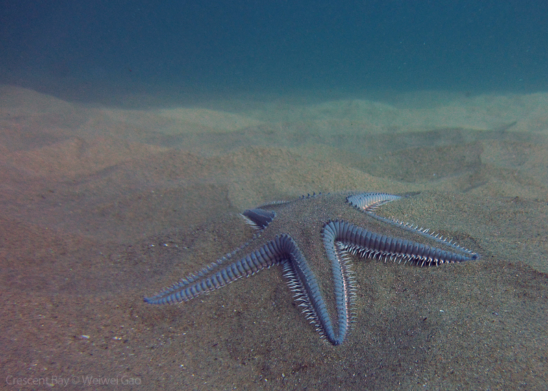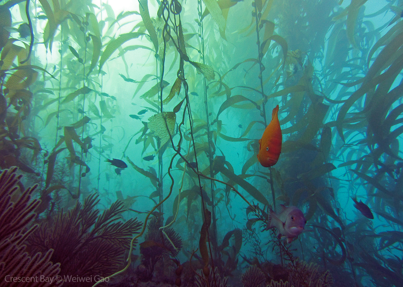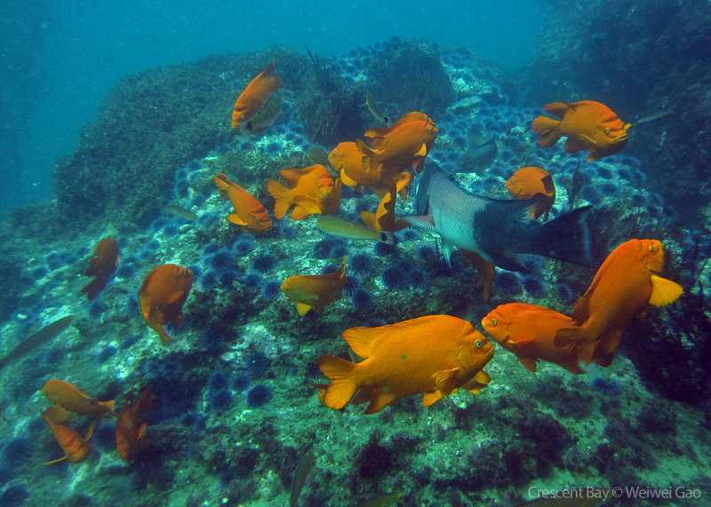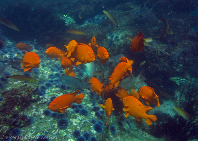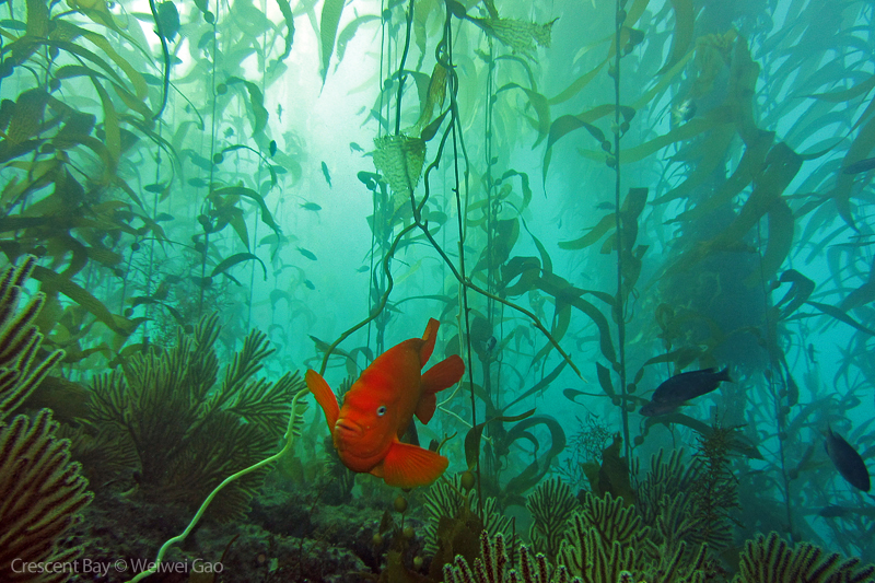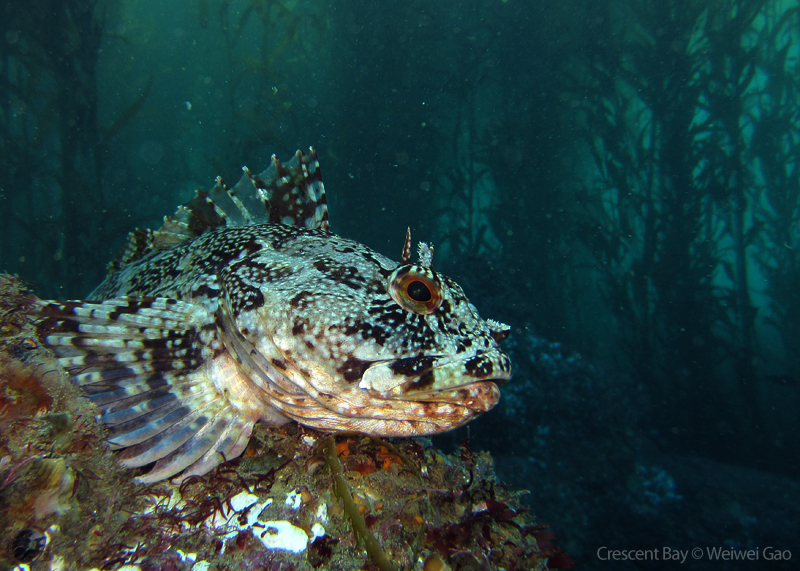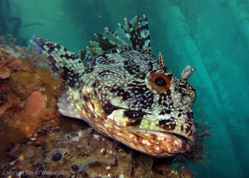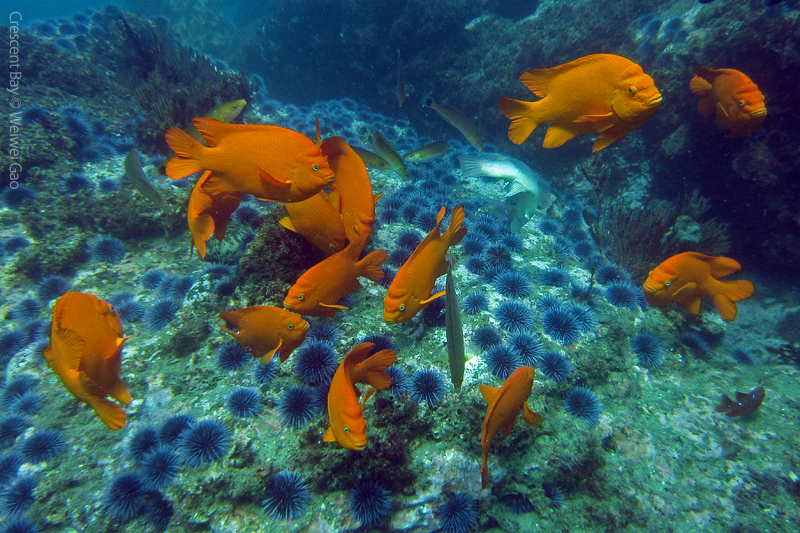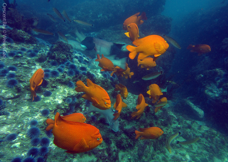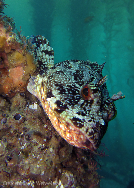 Laguna beach is a short 1-hr drive from San Diego and it offers a variety of dive sites with their unique scenery. Crescent bay is one of them. The beach is relatively small with two beautiful peninsulas extending far out to the ocean. Even without diving, this is a beautiful place to spend time. Both sides of the bay have sophisticated rocky structures with abundant of life.