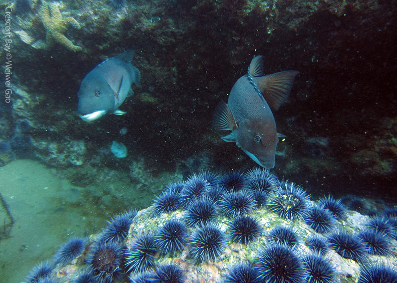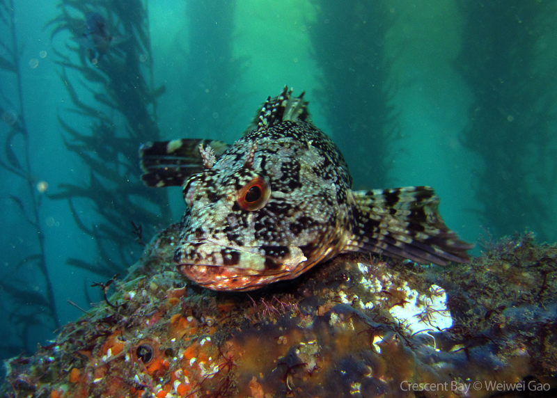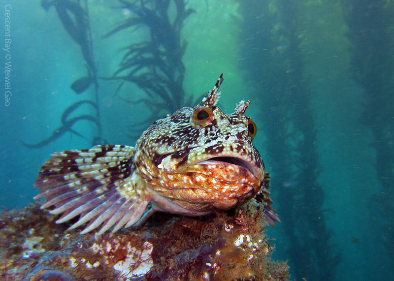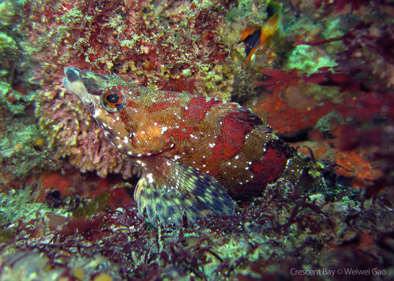 The visibility was very good in both dives. Under the boulders, this little kelp fish blended well with the background and made beautiful pictures.