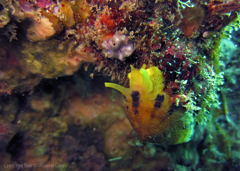 Along the boulders, I found quite a few Tylodina fungina. Compared those I saw at San Diego, they were much bigger here. To my surprise, they could extend their sponge-like body to quite a length. This was the first time I got to observe them so up close.