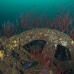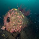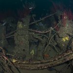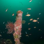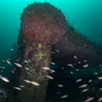 Getting there didn’t feel that long but it took us a few attempts to make sure the anchor was properly placed near the wreck. I put the camera into the water and immediately saw a strong but seemingly manageable current. I dropped down first and grabbed the camera line – but the camera was gone. Clinton threw a float into the water to mark the position. Instead of swimming to the anchor line and dropping from there, I decided to follow the thin line of the float down to the bottom. The mission of the dive now switched to camera recovery.