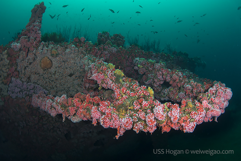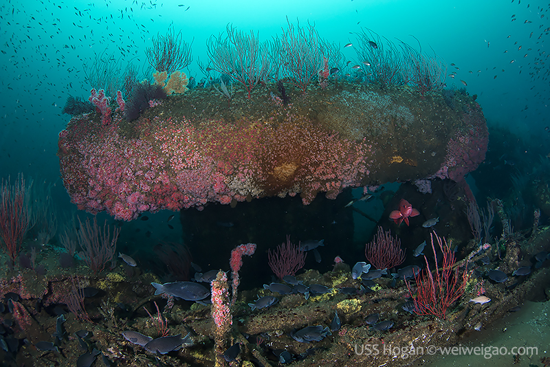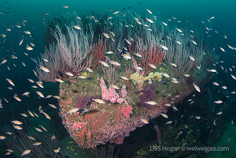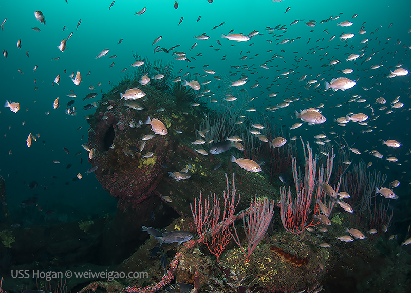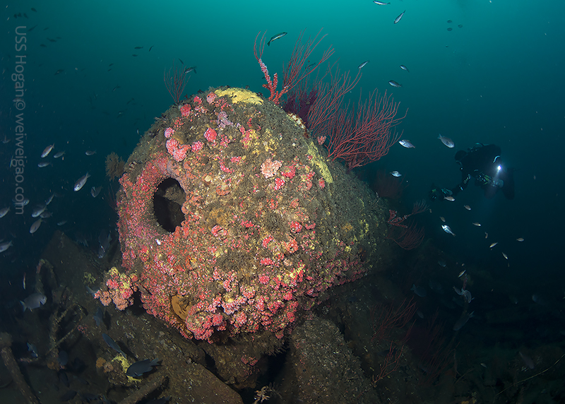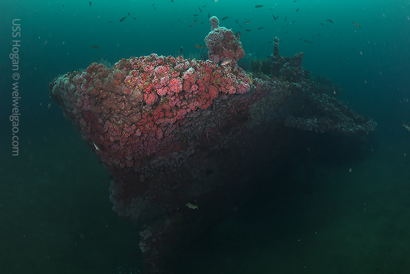 It turns out to be my best Hogan dive with >50 ft visibility, calm water, and tons of life. Starting from the bow, I slowly kicked toward the stern. A warm feeling came to me when I saw the anchor line and then Clinton swimming toward me.