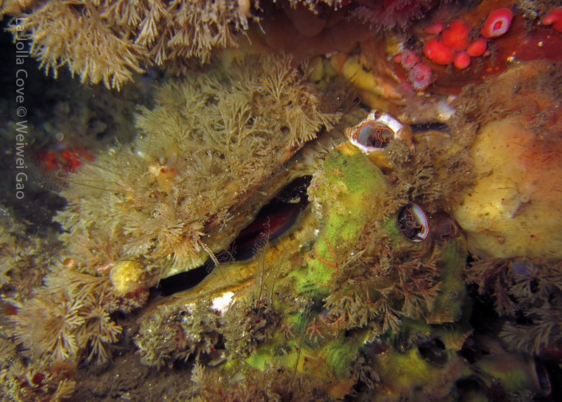 Although the visibility dropped a little bit, the sea was calm. We headed out to buoy A and decided to cruise toward the caves. Shortly after we descended, we were greeted by a very friendly harbor seal. The seal stayed and watched us at arm’s reach, obviously inviting us to join the play.