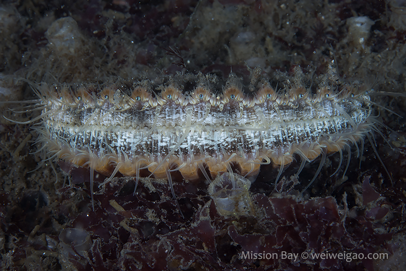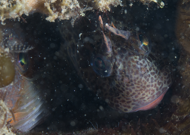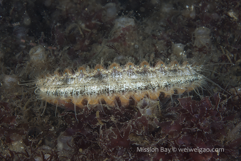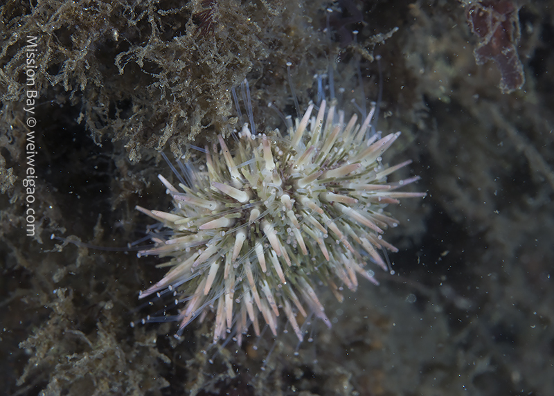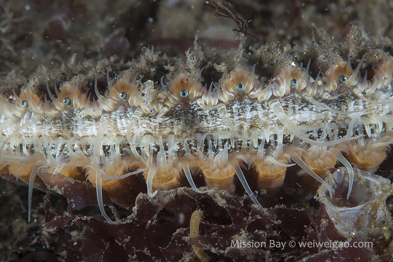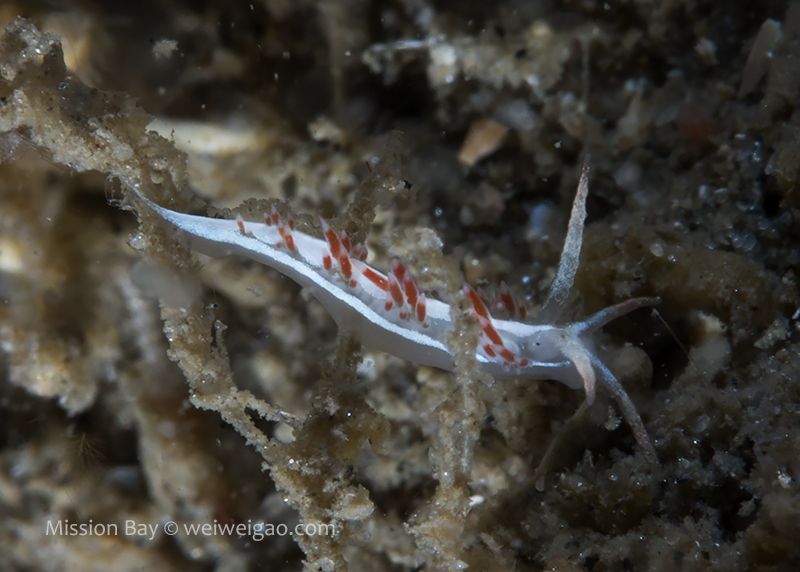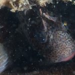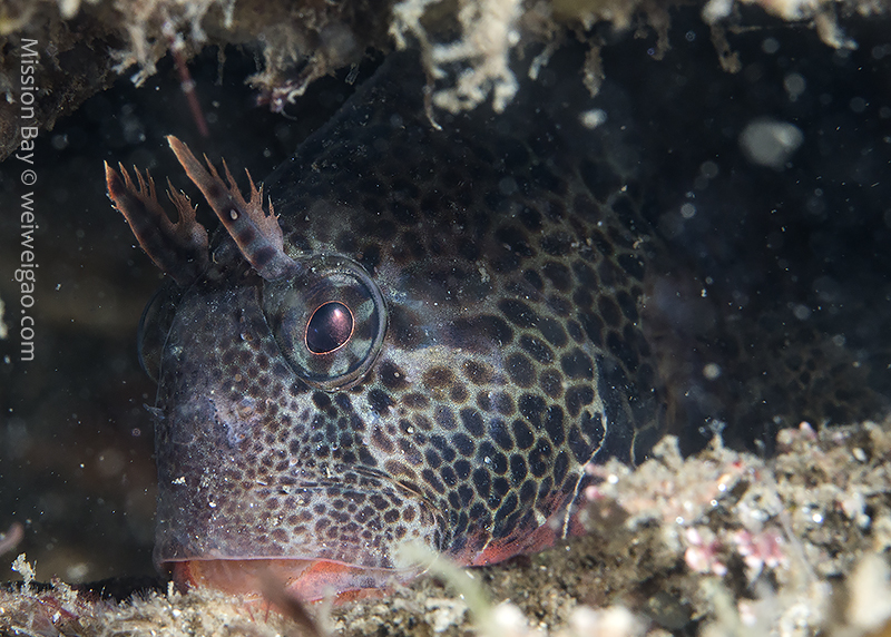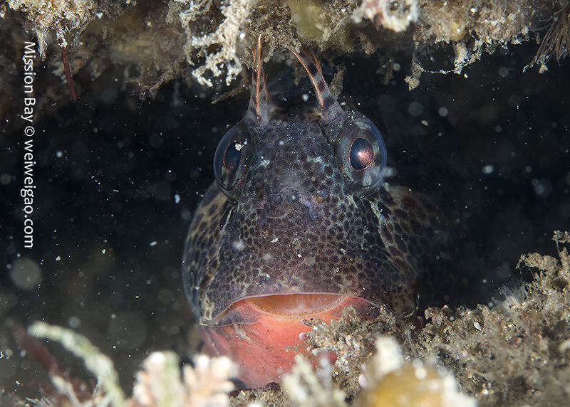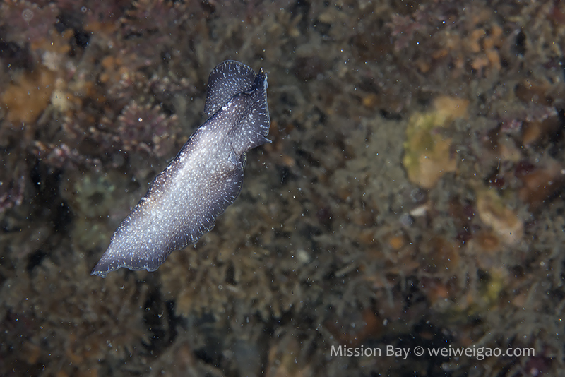 The ocean recently remained pretty calm so I decided to dive Mission Bay. It’s been a while since I came to Mission Point Park. The park was quiet at the dawn and the channel was beautiful. I entered the water when the tide just changed. The eel grass near the beach was less dense and the area became extremely shallow (2-3 ft depth). It’s impossible to walk or kick out so had to crawl a little bit. The visibility was bad for the first 30 min or so, most likely due to the tide change. I saw quite a few largemouth blenny. The picture was not good because the fish was shy and there were a lot of particulates in the water column.