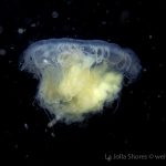 Once in a while at the shores, I come across fried egg jellyfish. The long thin tentacles are often the first signs of their presence. Following the tentacles comes a big mass. On the top is the bell, in perfect oval shape, translucent. Inside the bell is a yellowish core, just like an egg yolk, hence the name of the jellyfish. The majesty of the jellyfish comes from its motion when swimming. The fringe of the bell waves up and down, the body contracts and relaxes, the massive probes under the bell, like the bottom of a waltz dress, fold and unfold, and the long tentacles flow behind gracefully.