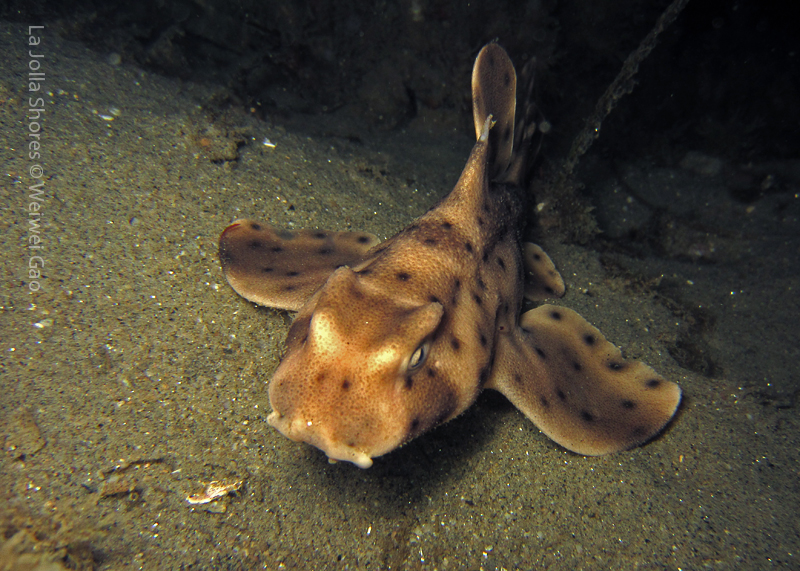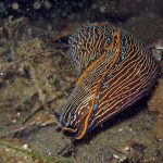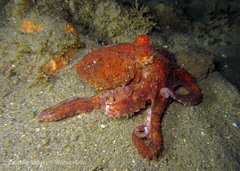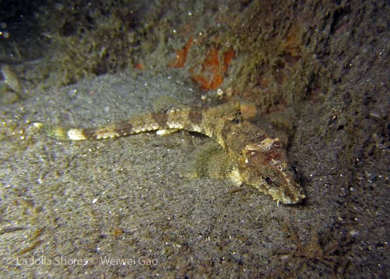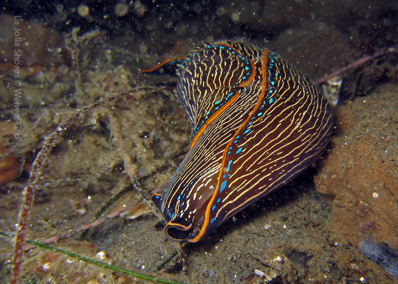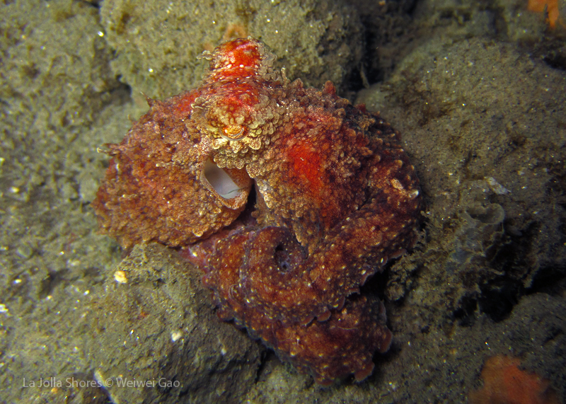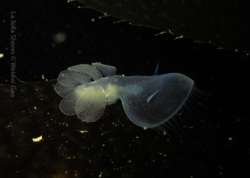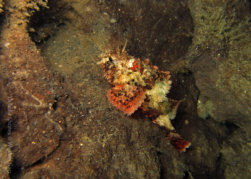After an aborted attempt on Tuesday morning, my buddy Mike and I opted for another night dive at the shores. Although going to the North Wall was attempting, the choppy sea persuaded us to pick a closer destination. We hit Valecitos point, starting further south than usual. We descended on the South wall, and swam north all the way to the Valecitos point. Many times just dropping on the Main wall, we end up with plenty of air and no wall left. This South + Main wall tactic worked pretty well. To my surprise, the lion nudibranch was still around – I thought they had gone with the season.