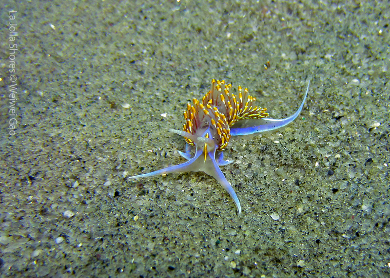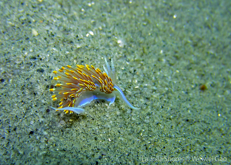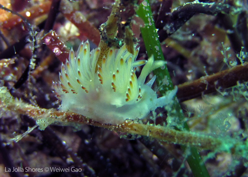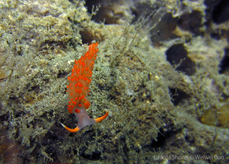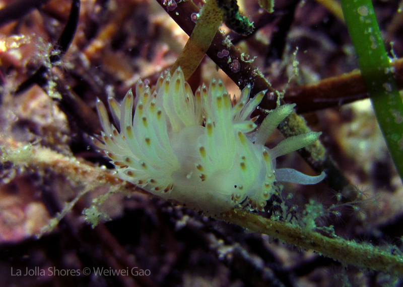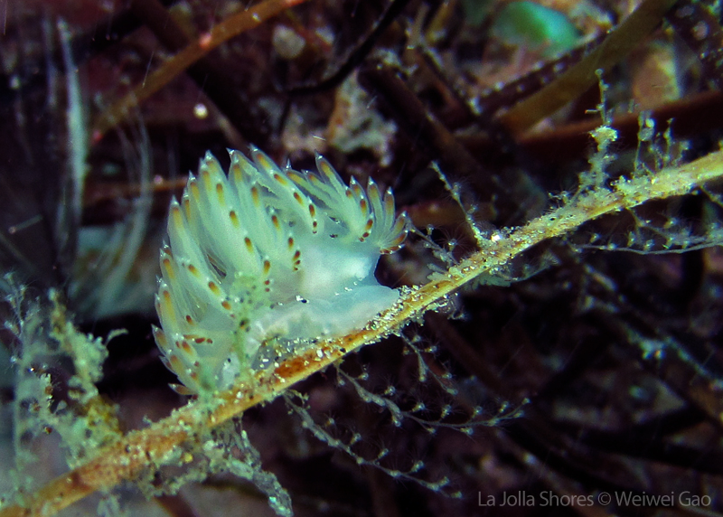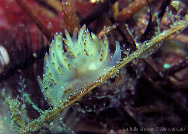 One interesting sighting was about this Flabellina pricei. They hided in the grasses so taking pictures, particularly with a pretty strong surge, was pretty difficult. But some of the pictures turned out are pretty good. You can see the fine structures and the colors of their spikes – quite amazing.