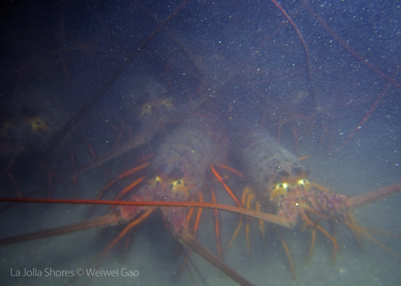 We headed out to the north wall. It had been a while since last time we visited that wall. Thanks for Mike’s precise navigation, we dropped off right on the wall. The visibility was not optimum but along the canyon it was not too bad. Other than a few rock fish, I didn’t really many interesting creatures. The crevices of the wall were full of lobsters. Lobsters often give pretty dull pictures but a lot of them gathered were quite fun to watch.