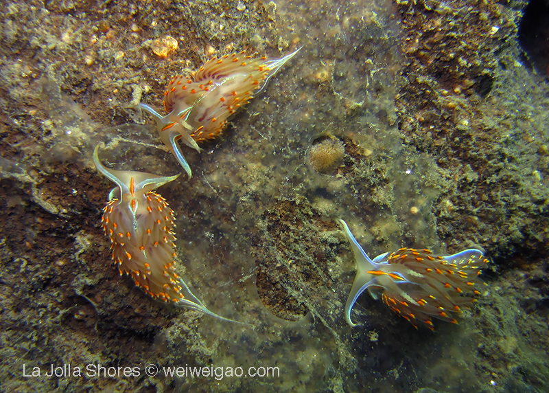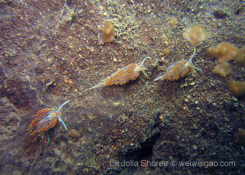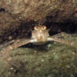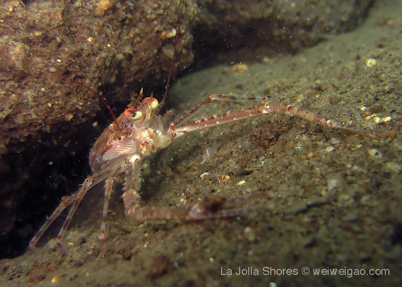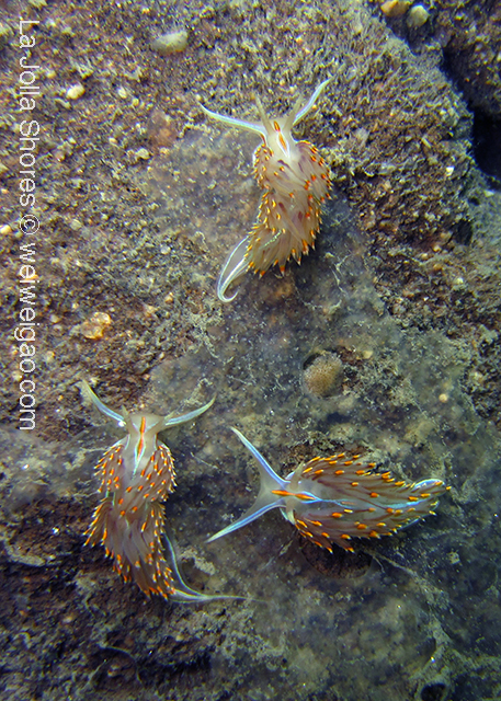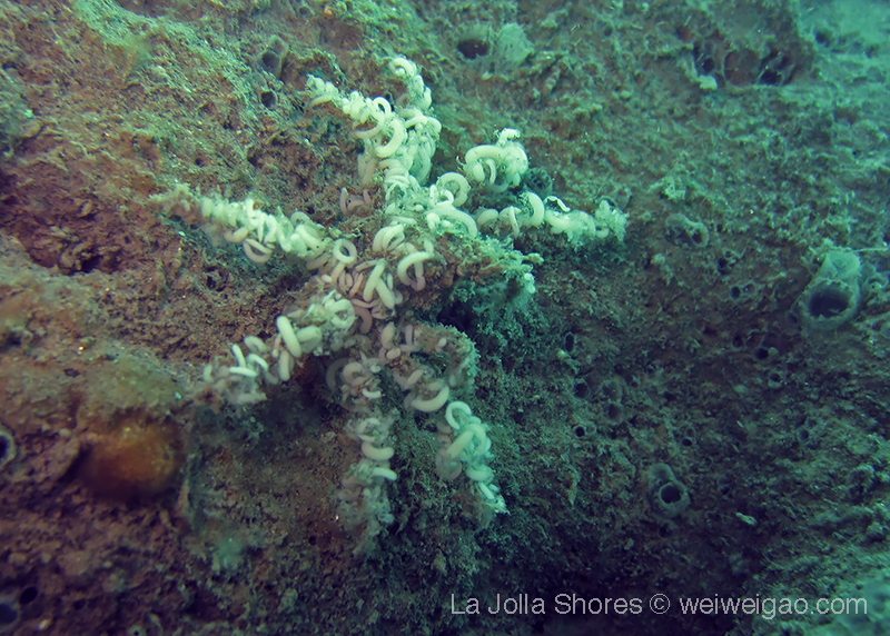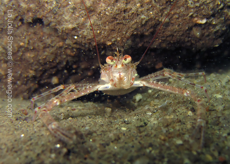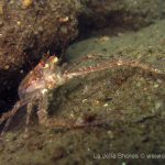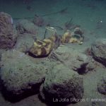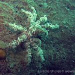 Tunicates continue to cover some areas of the walls, and some large Octos are hiding in the cracks. The Tuna Crabs are blanketing the deeper slopes. Lots of little Kelpfish are at the base of the walls hiding among the detritus and Sand Dollars that are piling up. A very red Sculpin was almost blinding.
