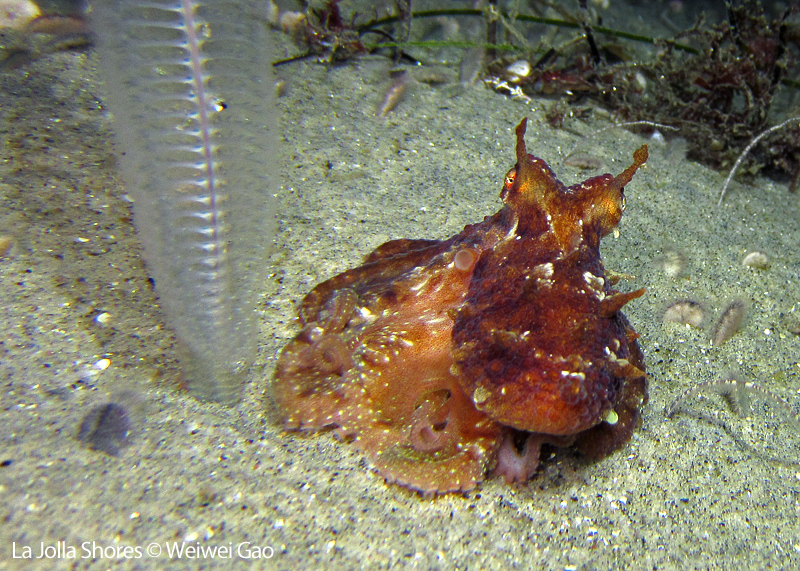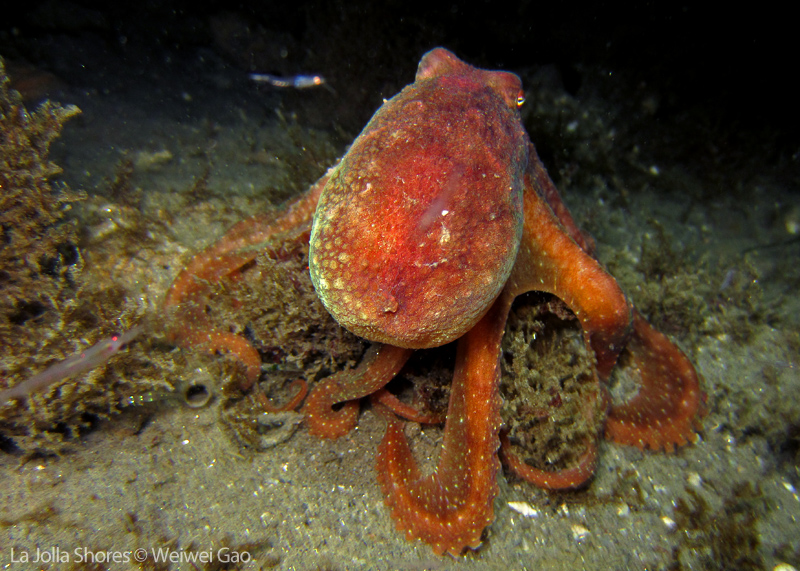 I also had some fun with this octopus. He is in a good size and quite angry at my light. As you can see, he poses all gestures and trying to scare me away. Well, at the end it’s his win.