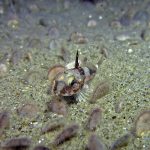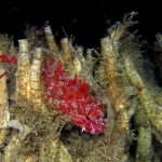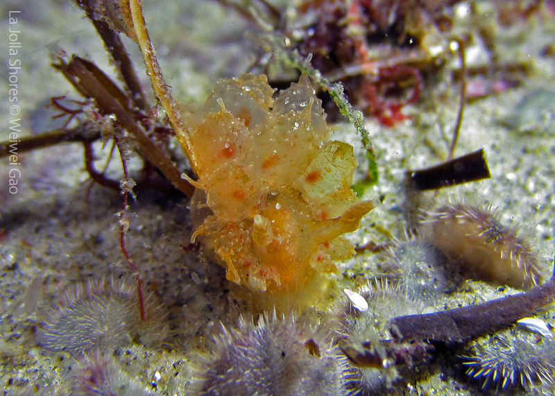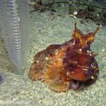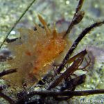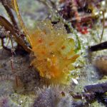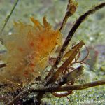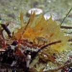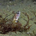 First, the most exciting event is the sighting of Dirona Pica nudibranch. Since I learned its presence at the shores, I have been trying to find one in the past a few weeks. Finally, on my way swimming back, there it is – right in front of my eyes. The little guy hides himself under the grass, which makes the picture taking quite challenging. But I still managed to get a few shots with okay details. It seems like they have tiny ‘feet’ around the body and the whole nudi looks like made from brown sugar.