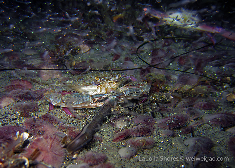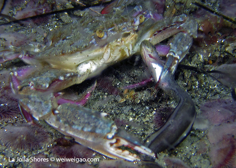 While watching the pipe fish, I was distracted by a sand crab, who just caught an eel. The poor eel was still alive in the crab’s claws, its body twisting.