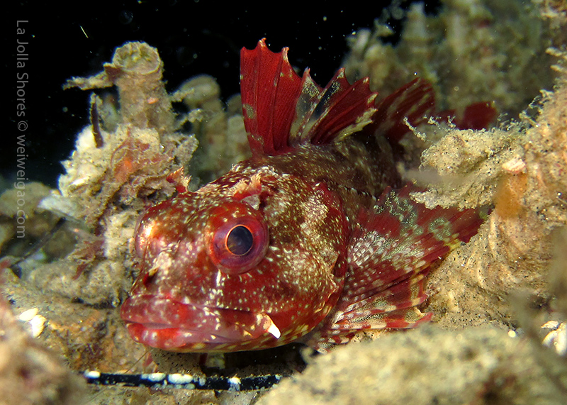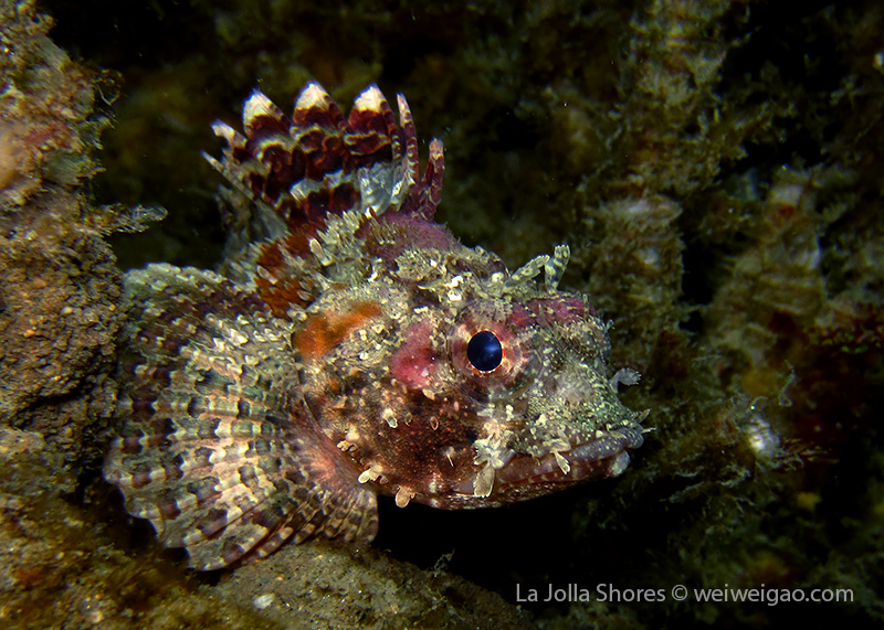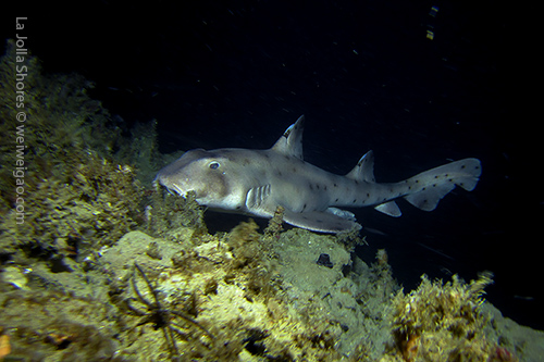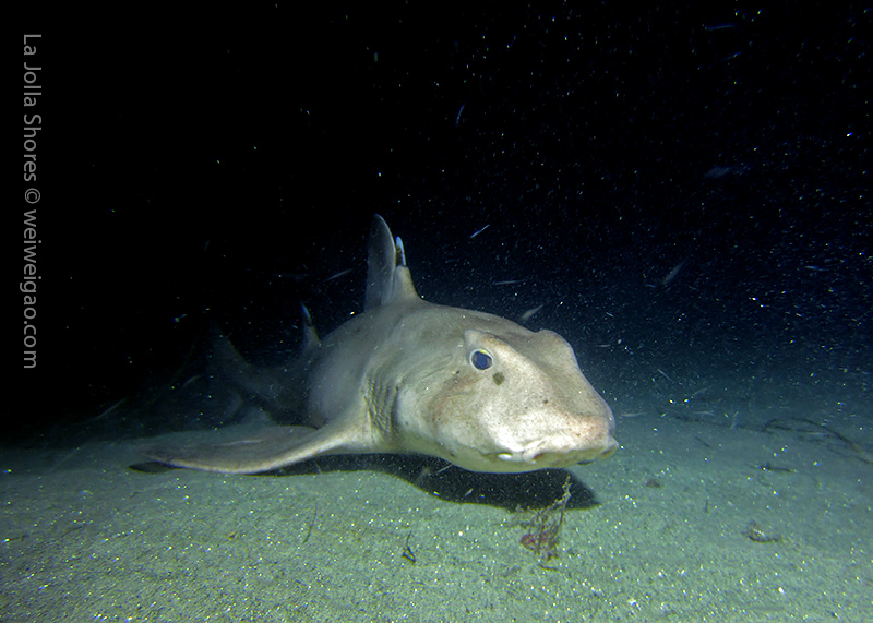 Surprisingly, there were so many adult horn sharks near the canyon. They are cruising the canyon wall. On particular shark was hanging near the edge of the wall, sticking half of its body out.