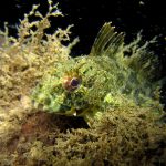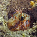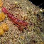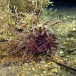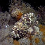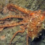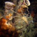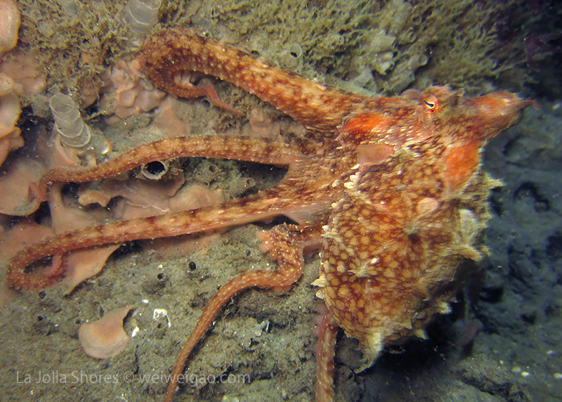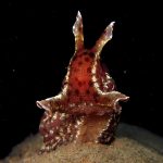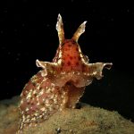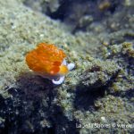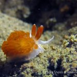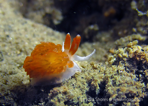 The encounters were common critters. Toward the end of the dive, I came to the V point and cruised the plateau. I spotted a nudibranch with bright orange color. I thought it was a Hermissenda crassicornis. But then I noticed its big renophores. It was identified as a Aeolidiella oliviae, my first sighting.