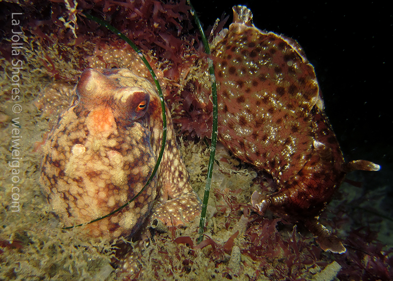 Headed out to the shores for a night dive. I brought my compact camera and met up with Jackie. Dropped near the main draw. The water was a bit surgy. Took a few quick snapshots of the sea hares.