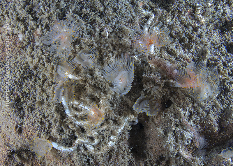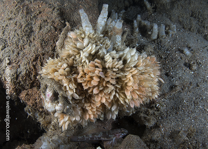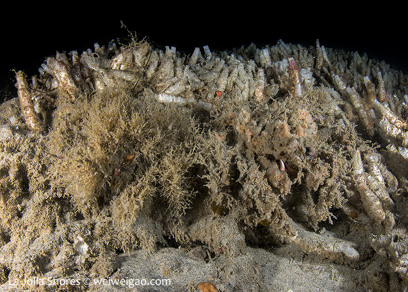 I left Weiwei in the arctic waters and I headed back up slope where I came across more adult Horn Sharks, and a large Tope Shark who kept me company – circling many times all the way to 14’ – due to the murk, which I hate, all I could see was its side and caudal fin.