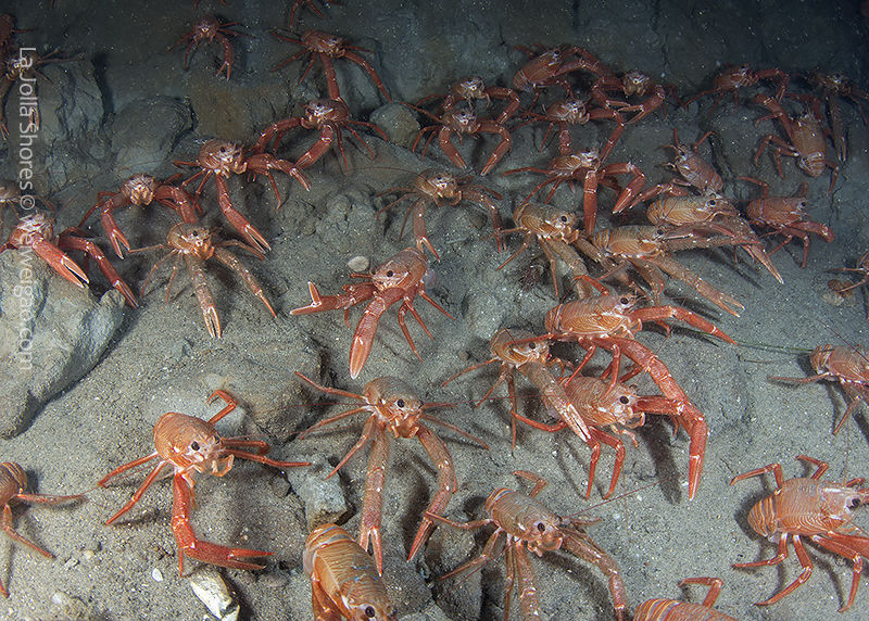 Tons of very juvie Rockfish out, some Scorpionfish, Spanish Shawl, fat Tuna Crabs, a small Decorator Crab, and tons of baby Sanddabs. Found evidence of perhaps new kelp growth.