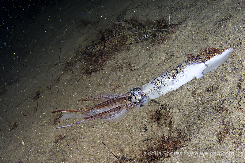 Headed to the shores for a night dive after Friday’s meeting. The water has calmed down a lot and the condition was nice. Dropped at the main wall and I immediately saw a large group of squids. But they didn’t stay and swam down the canyon into the darkness. There were a few seemingly lost ones cruising along the wall.