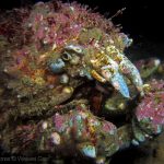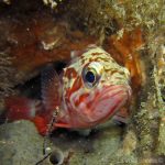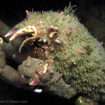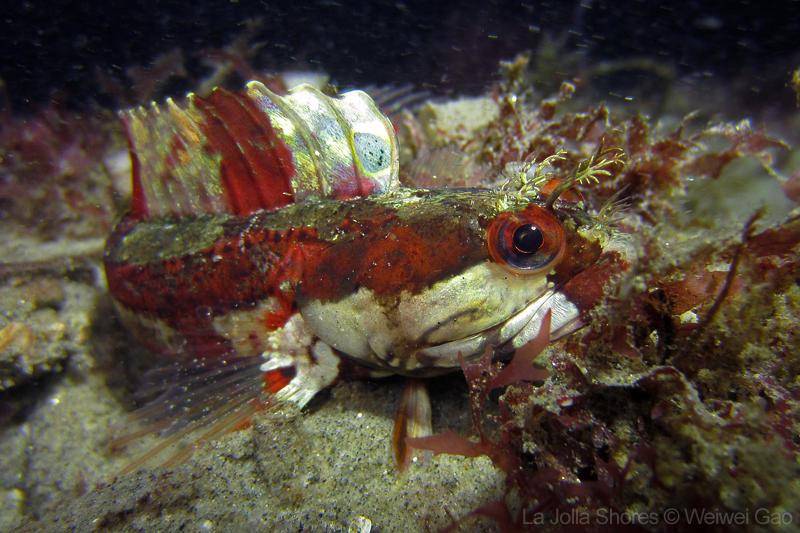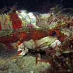 Some nudies on the sand dollar field but taking pictures was difficult. Saw this fringehead patterned with white/brown/yellow blocks – very stylish. The swell is diminishing so the condition should get better and better.
