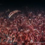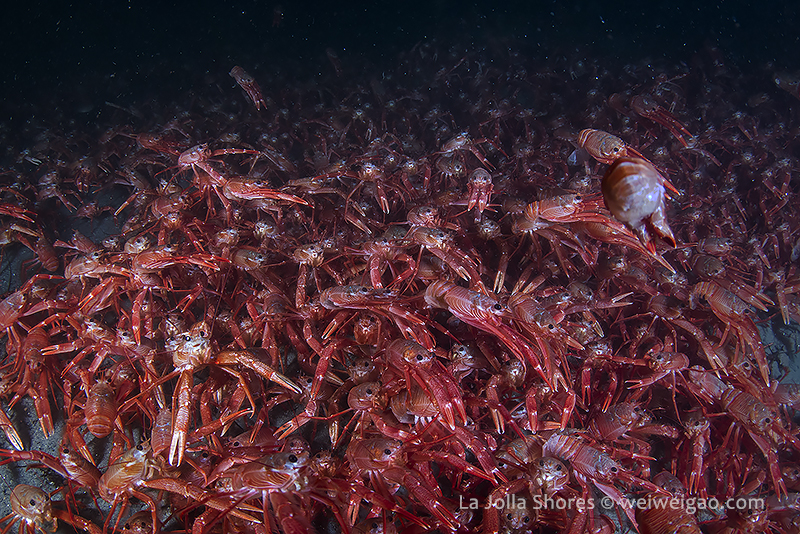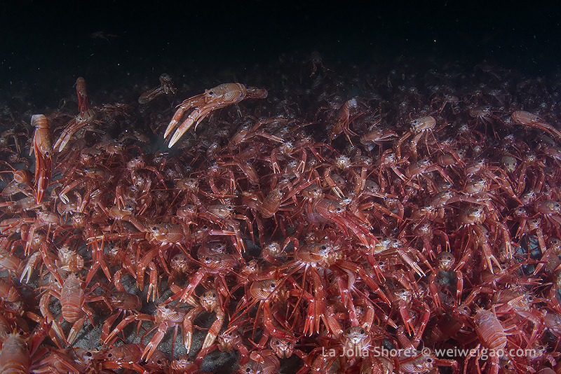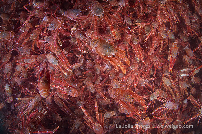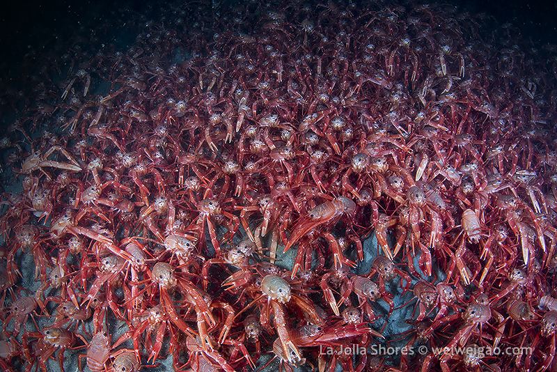 A few pictures from shores tonight. Headed to the north of the V point where the tuna crabs were less crazy. Started from the main wall and headed to the north. Looked at temperature at the V point. It was 49F, but did not feel as cold. The viz was ~15 but hazy. The tuna crabs were just as crazy but became slightly quiet on the north.
