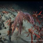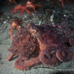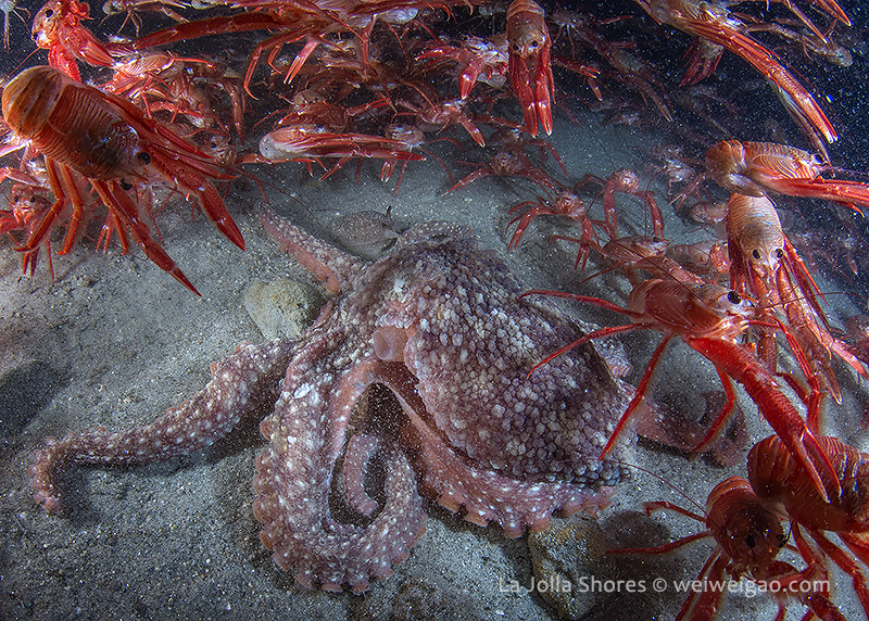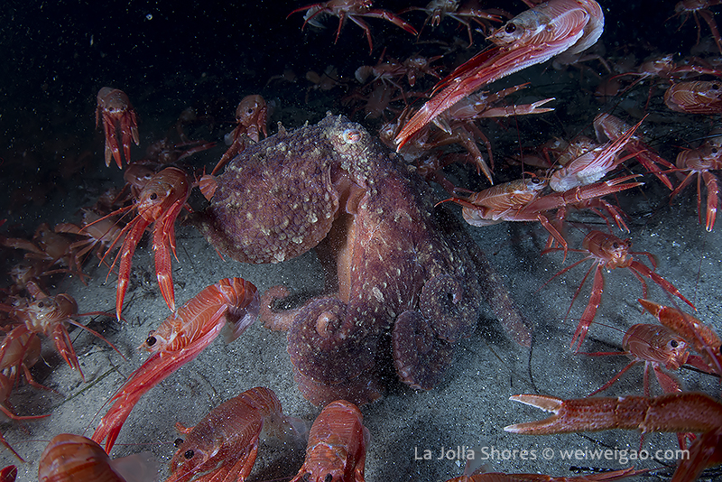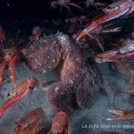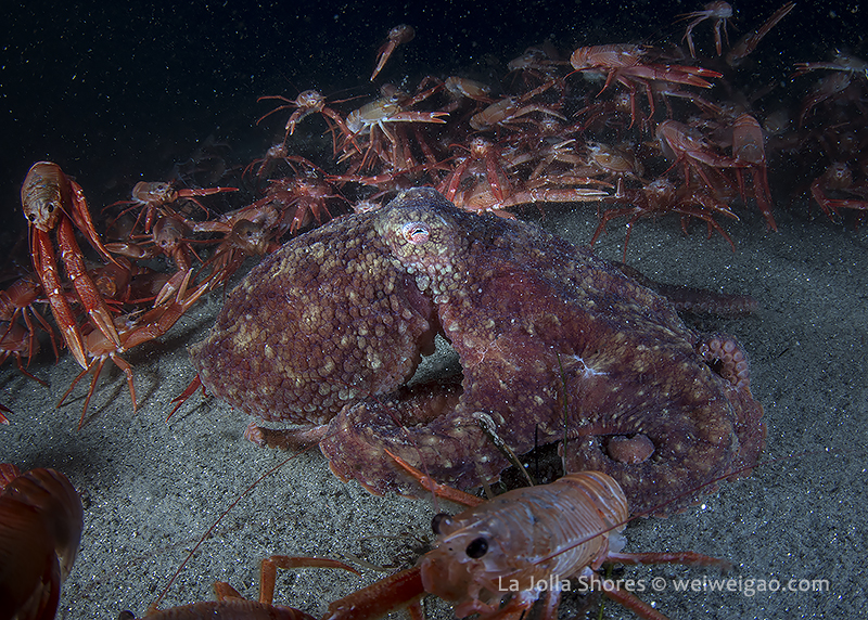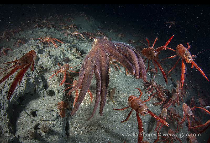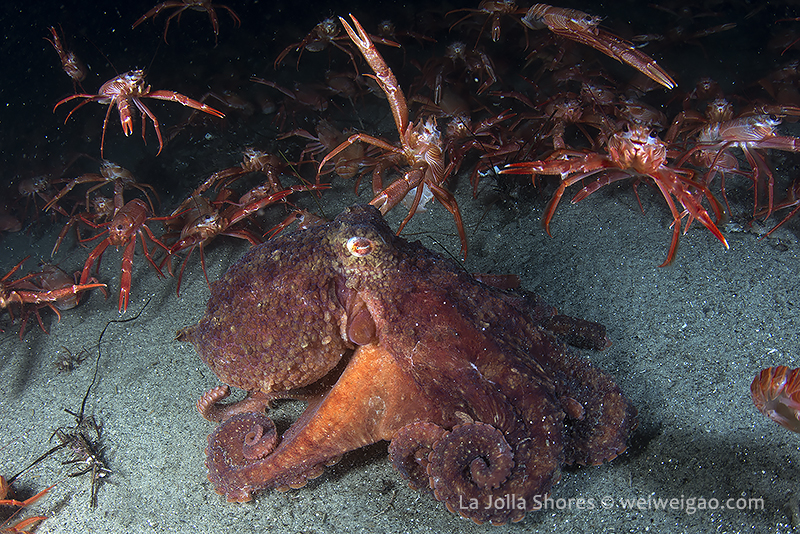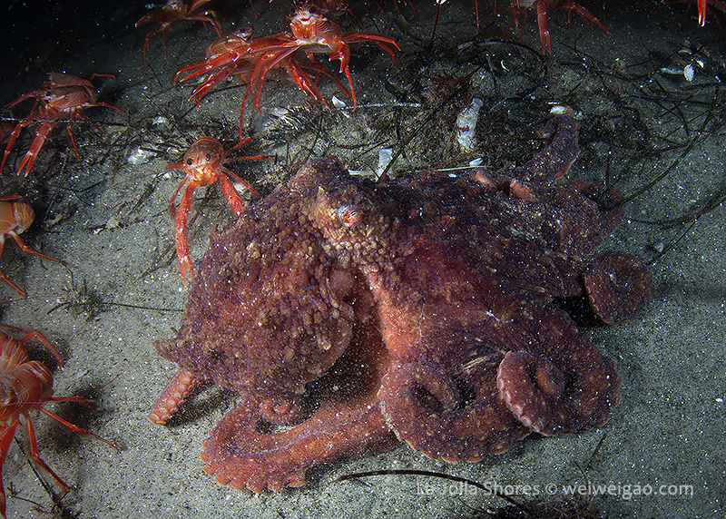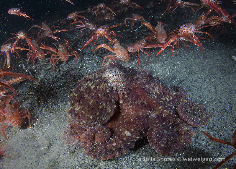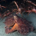 There were a few yellow/brown rock crabs around. The highlight was a big octopus in the old crap patch area. It came out from a crevice and kept on bombed by the tuna crabs.