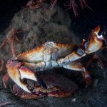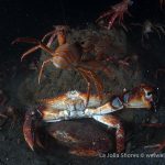 Quite a few brown rock crabs in pairs and one was trying to climb the wall: the male was trying hard going vertically while carrying the female – a tough job. They had no success after a few attempts.