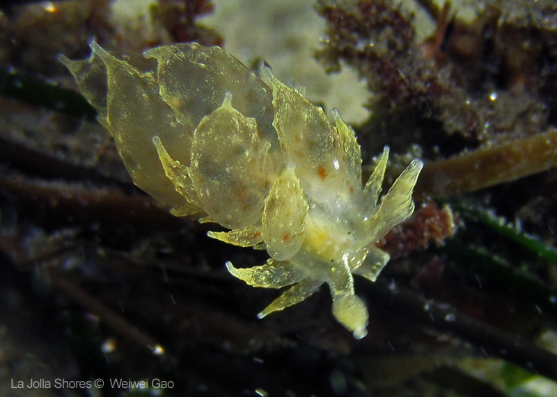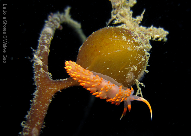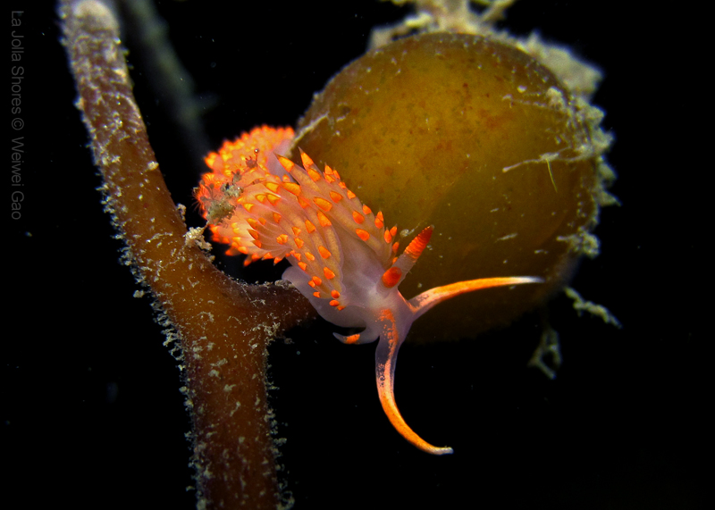 Also get a great opportunity to take pictures of this Stearn’s Aeolid on a piece of kelp. Very nice!