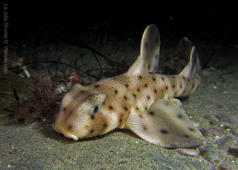 Along the canyon, I was accompanied by a big sea lion and a adult horn shark. Their sudden emerge from the dark could be scary.The horn shark rested on the canyon wall and it looked gorgeous.