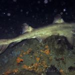 After we arrived at the v-point, we circled the plateau but did not find either the angel shark or the giant halibut. Then we descended to the ledge and hanged around there with other creatures. Shrimps, fish, crabs, eels and octopus were all out. The whole canyon wall looked like a big party.