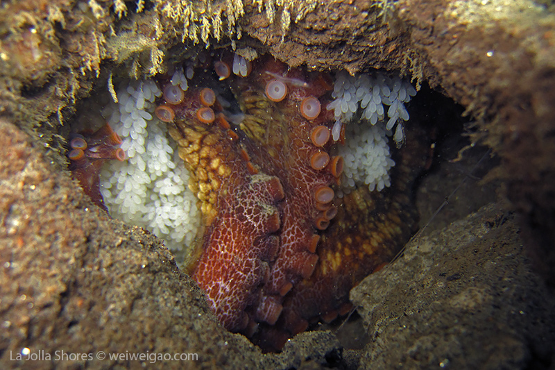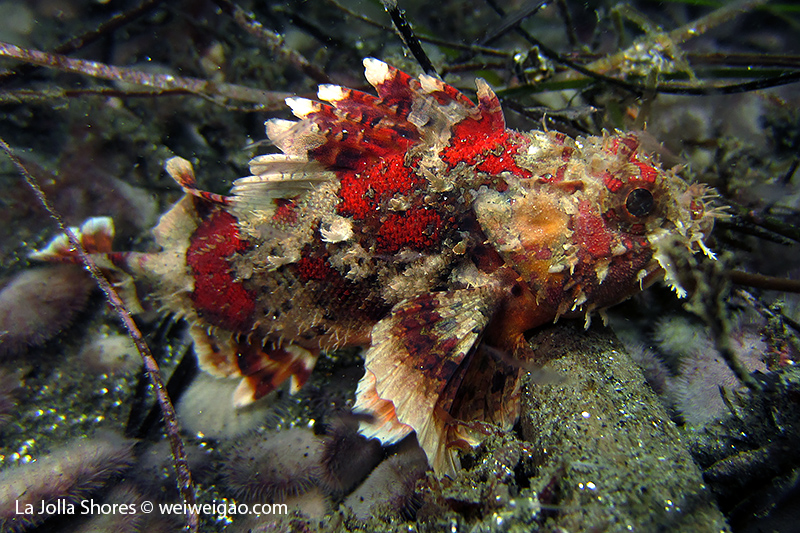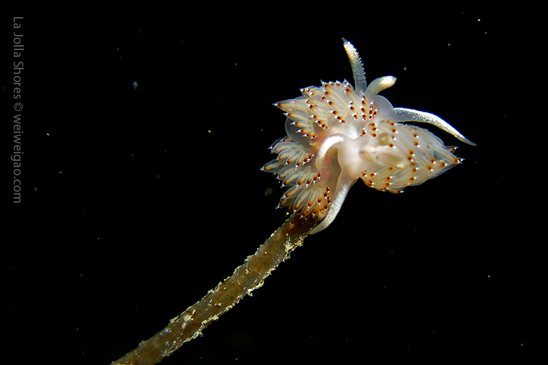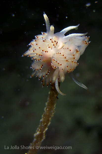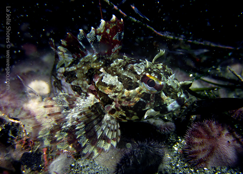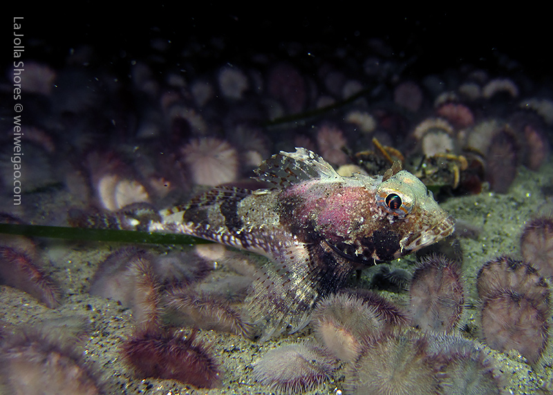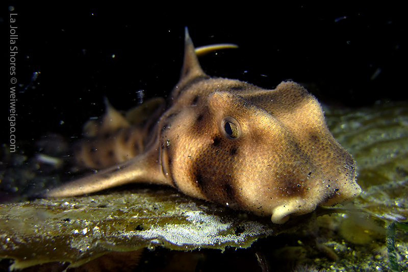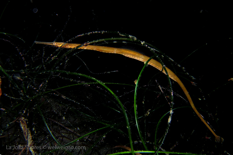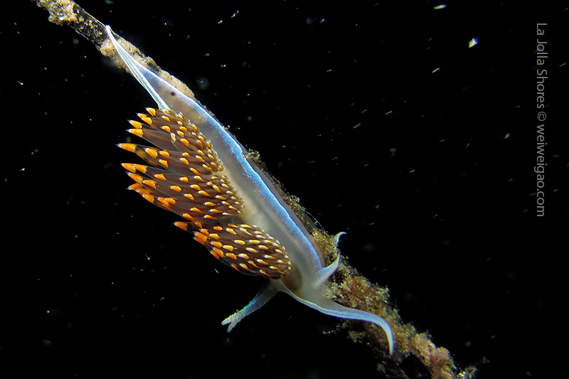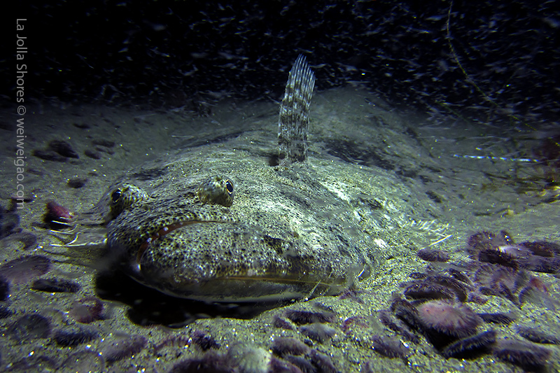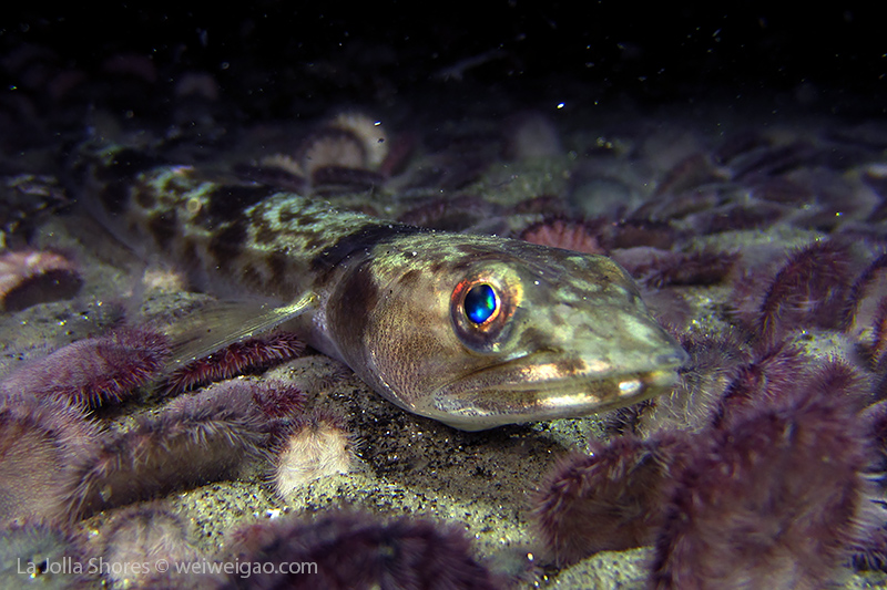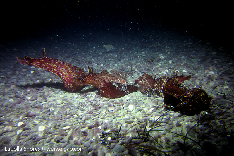 Tiffany and I headed out to La Jolla Shores around midnight after hearing the recurrence of the anchovy run. We spent about 1.5 hrs at the canyon without seeing the fish. However on our way back, we noticed that more and more fish appeared. We waited and finally they came. To our surprise, they didn’t look like anchovies but were much larger in size and obviously were chasing the anchovies. There were so many of them and I was totally blanketed. I felt like hit by numerous bullets and frequently got punched on my face and head. Here is the a short video of the encounter.