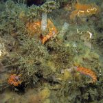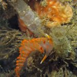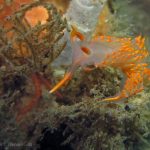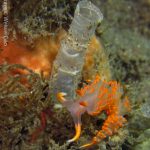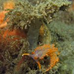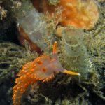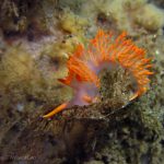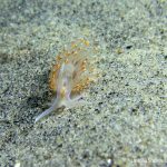 Plenty of other nudibranchs are also around. A pair of white spotted porostomes is enjoying their time together. On the grass at the sandy bottom, a Price’s Aeolid is hanging out with a Hermissenda crassicornis. I think they are telling that a new season is arriving.