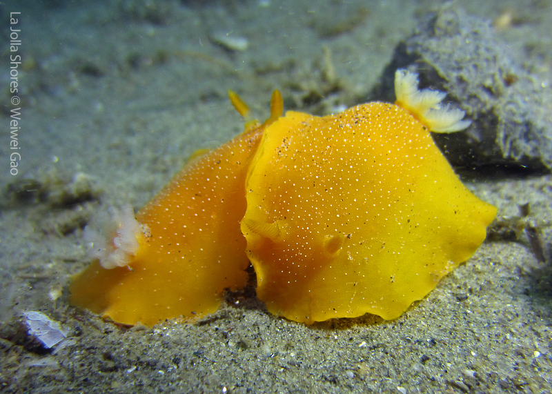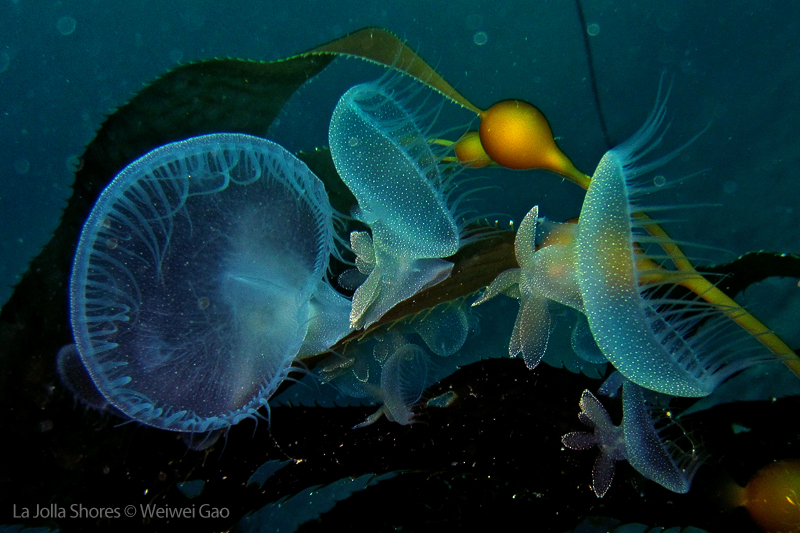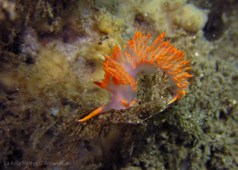Lion’s Mane Nudibranch is a popular resident at La Jolla Shores. During the winter season, I thought they had left the shores and only came back in a new season. But last night, I veered off the normal route to the Vallecitos point and accidentally discovered that a large number of them were still hanging around the kelp north of the underwater canyon. With this discovery, I woke up early this morning and decided to pay them a visit.