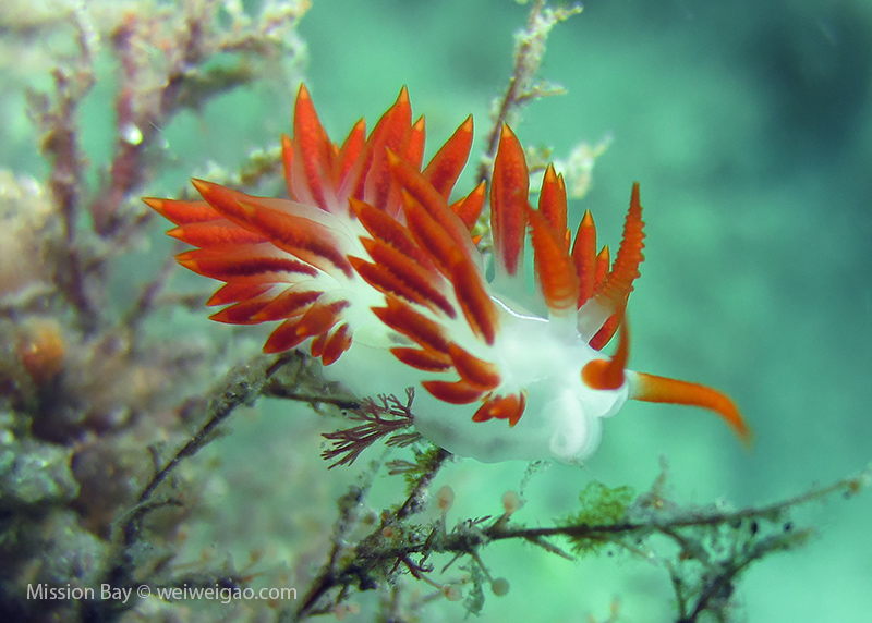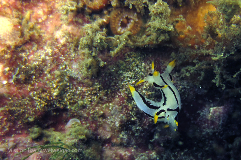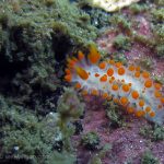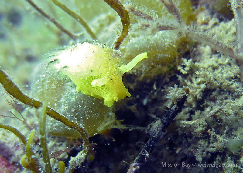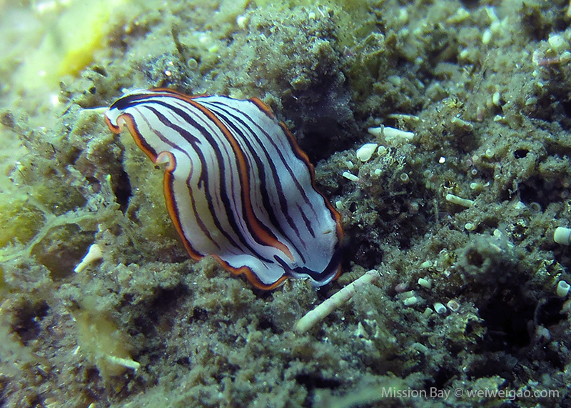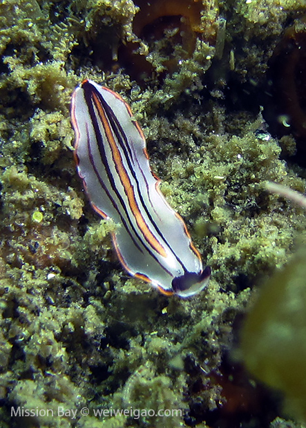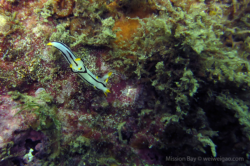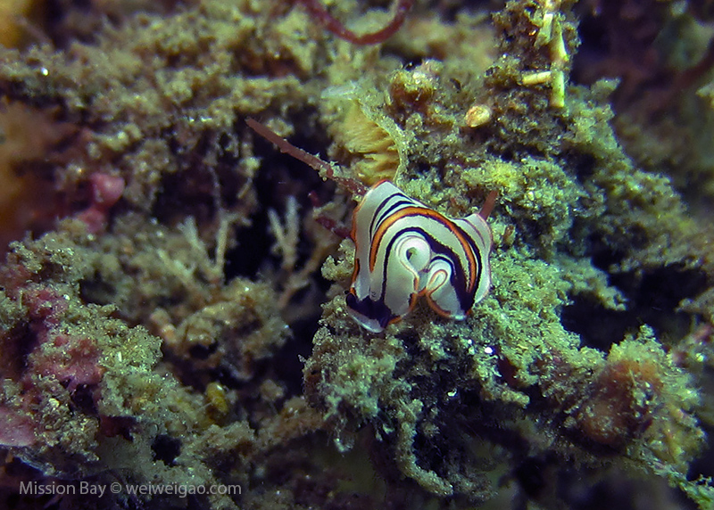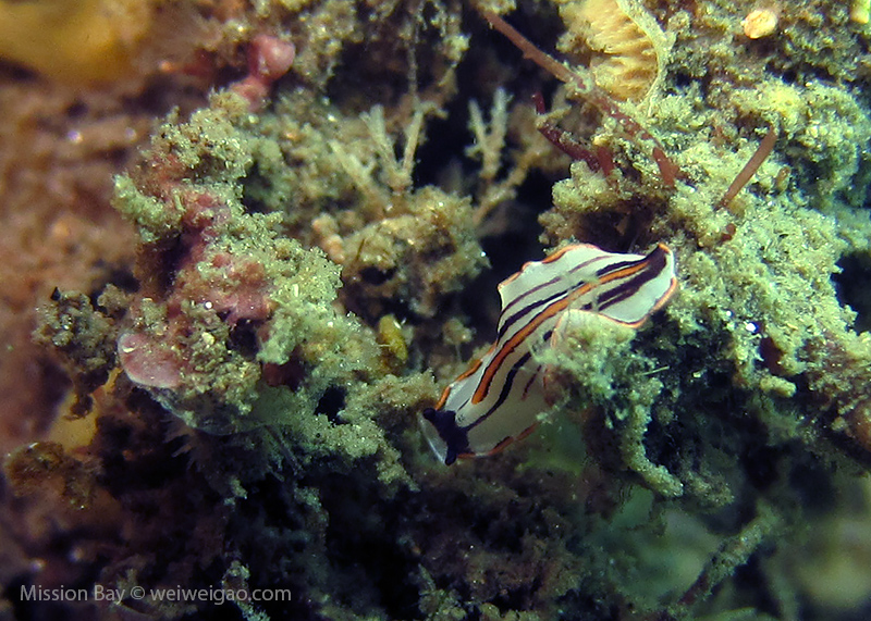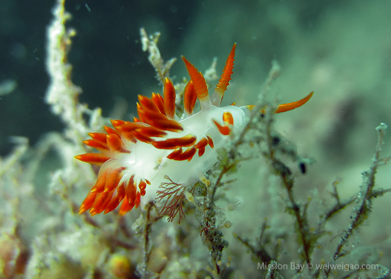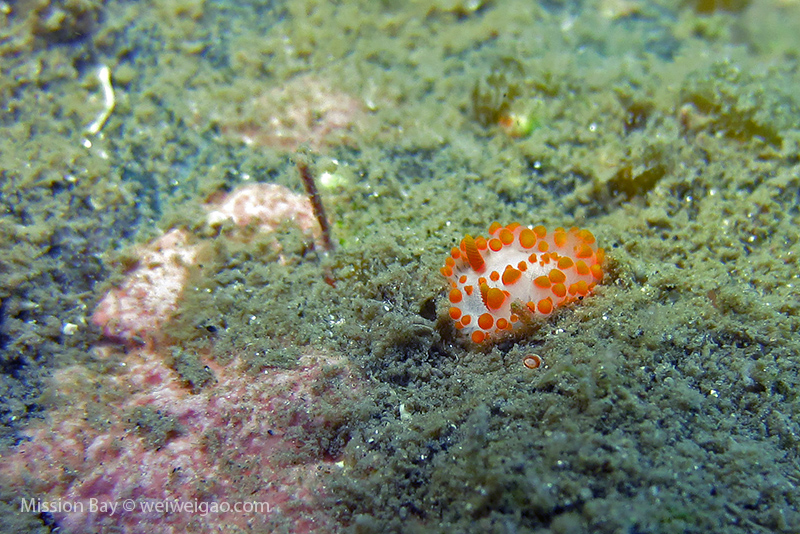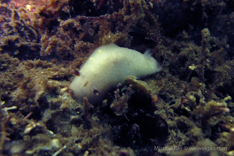 We followed the boulders and swam out toward the jetty. The water was no deeper than 25 feet but felt pretty cold (~55F). Although it was a bit murky, there was no surge or any current. The dive was uneventful at the beginning. Slowly, we passed the eel grass and came across quite a few Limbaugh’s Cadlina on one boulder. Then we started to see more and more nudibranchs. Each species of nudibranchs occupies a section of the boulders. If one is spotted, most likely there are a few around. We also came across two different kinds of polyclad flatworms. Most critters here are super small and it requires sharp eyes, concentration, and patience to find them. Here are some cool creatures: